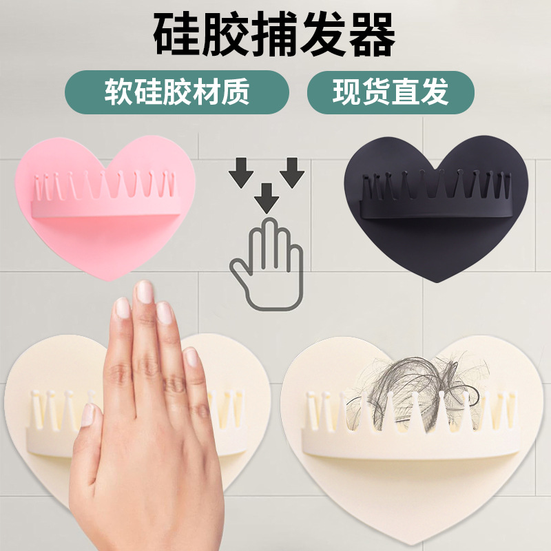 跨境新款硅胶头发收集器吸盘设计易收纳浴室通用硅胶头发收集器