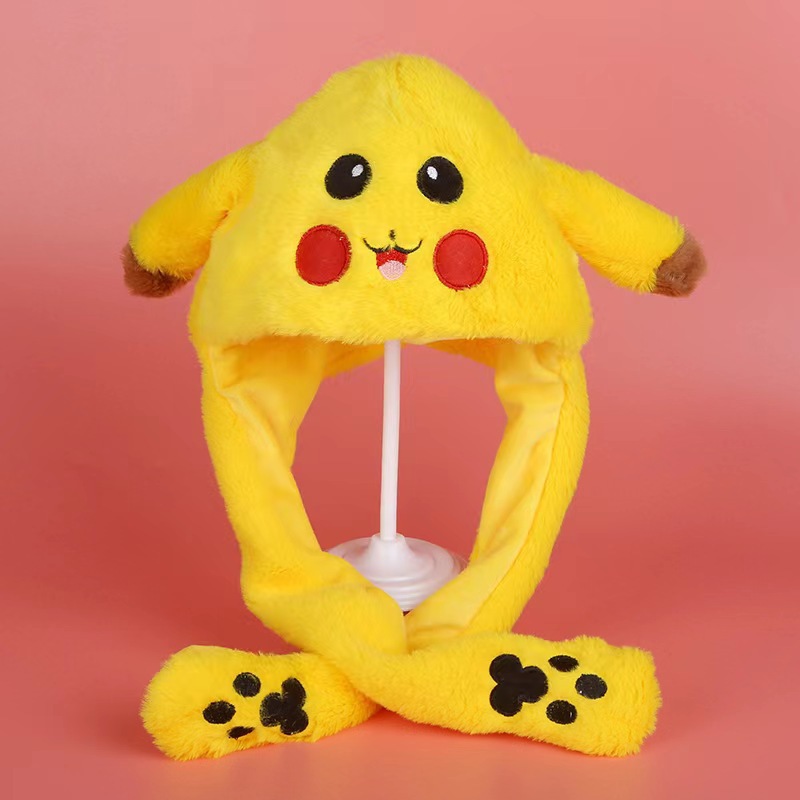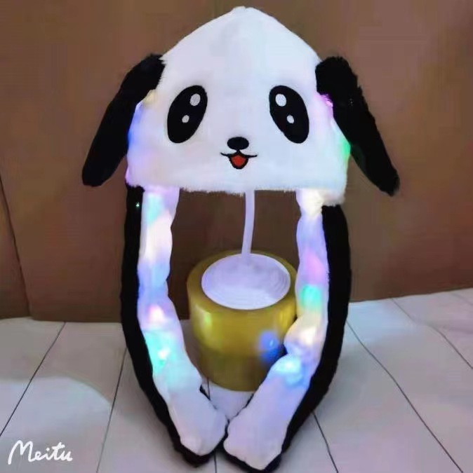 跨境发光帽子捏一捏耳朵会动的儿童帽子卡通亮灯礼品儿童冬帽圆顶