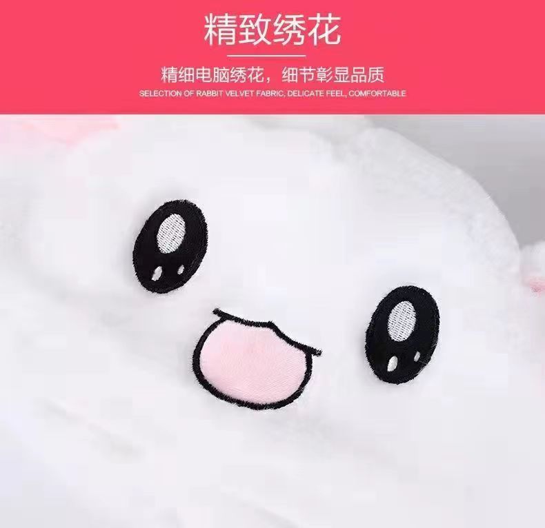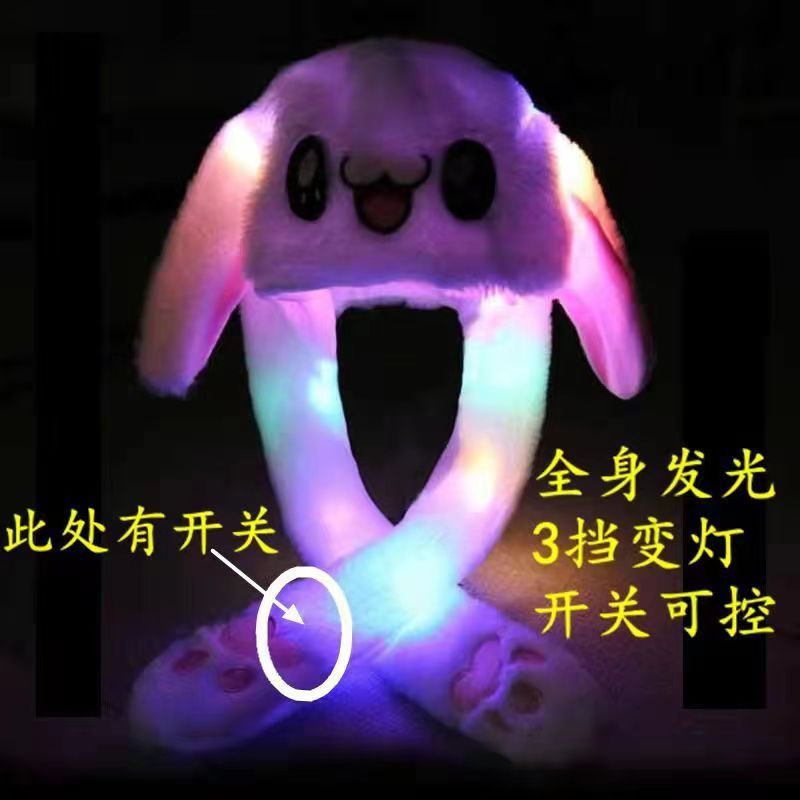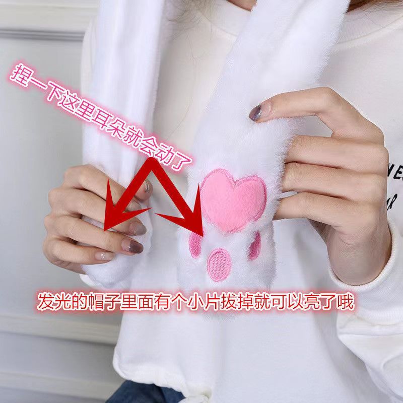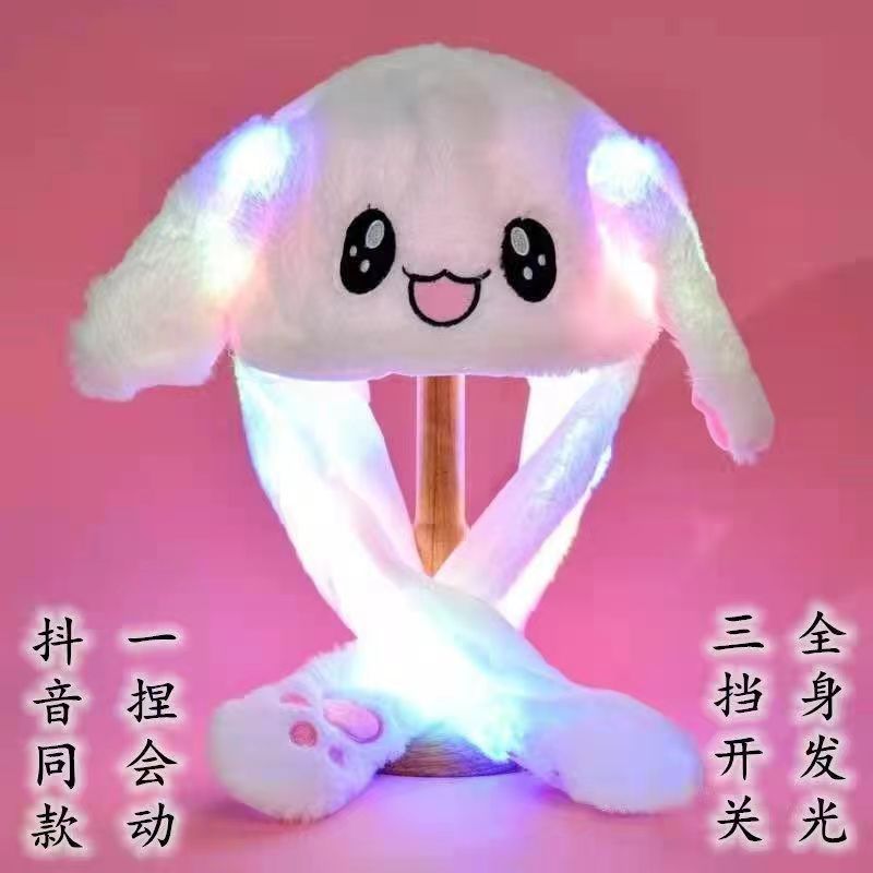 抖音同款可爱毛绒兔子帽一捏耳朵会动的兔帽发光气囊帽子保暖防寒