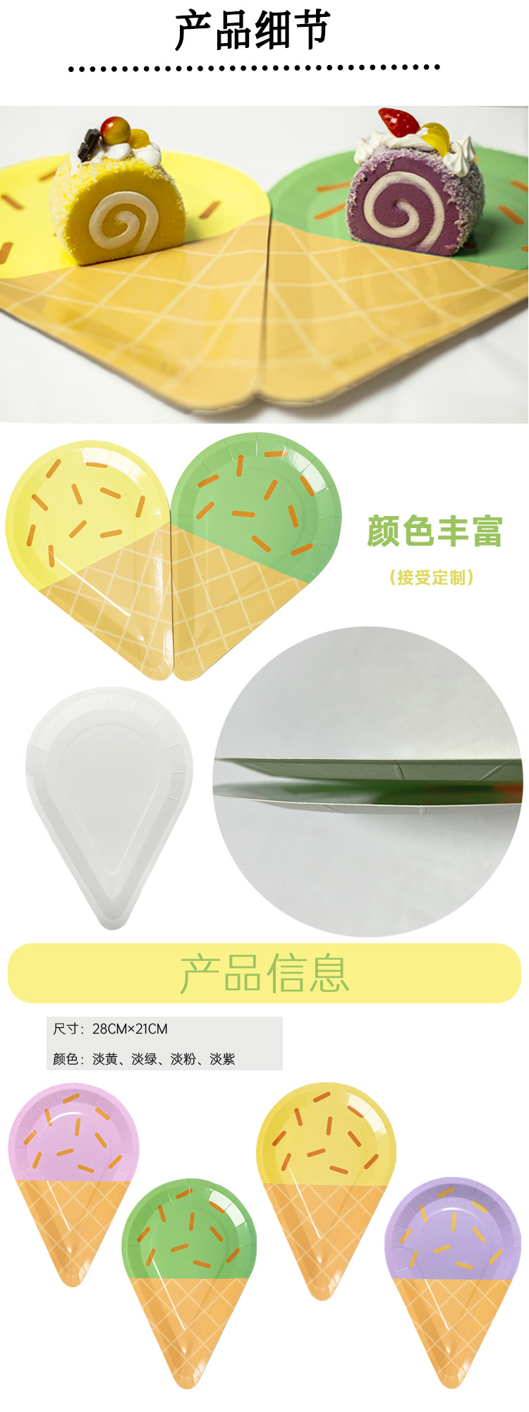 国境を越えた新しいアイスクリーム異形多色パーティー紙皿使い捨て食器誕生日パーティー装飾セット用品