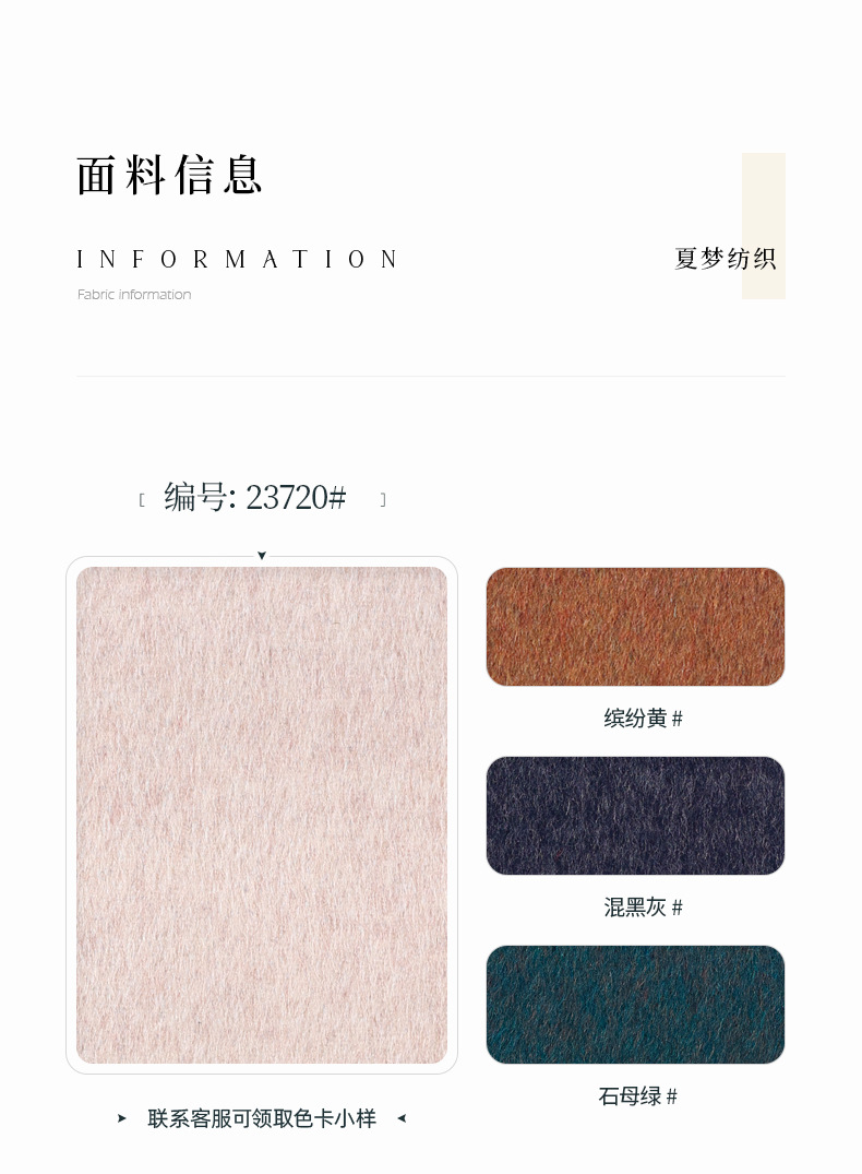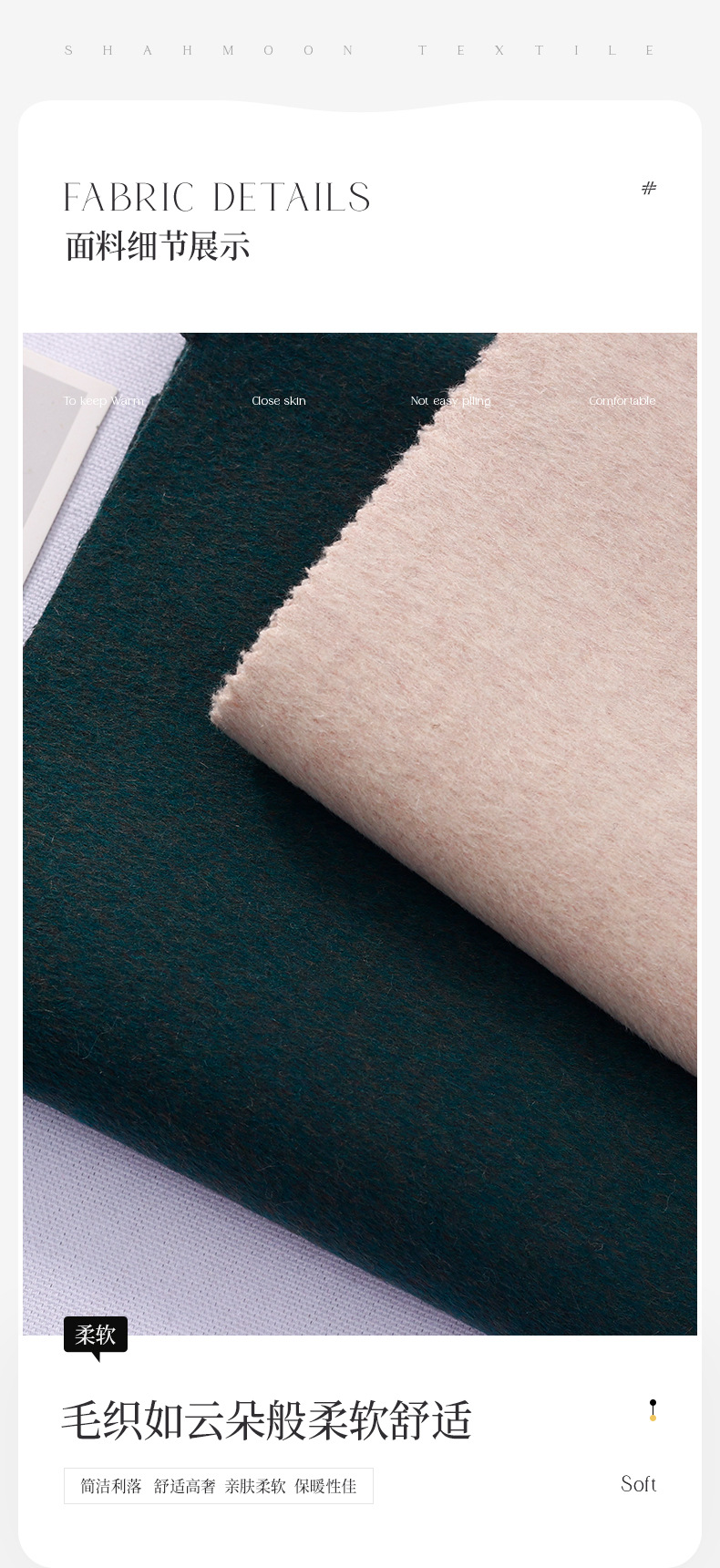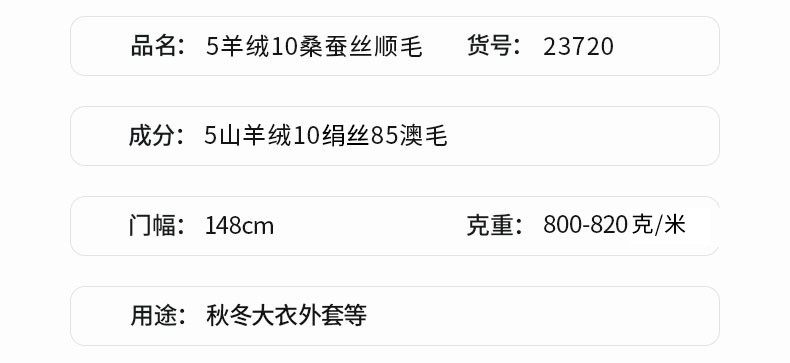 23720 5カシミヤ10绢糸順毛85豪毛両面生地秋冬コート生地