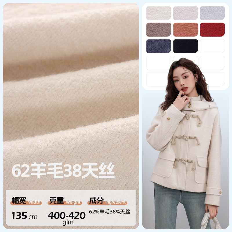 24621 400g片面ウール生地62ウール38日糸秋冬毛コートダウン生地