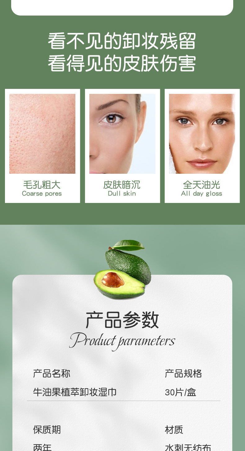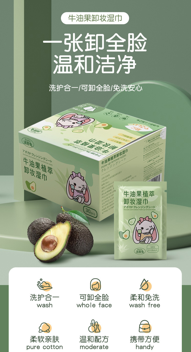色分類 牛油果化粧落としウェットティッシュ30枚セット