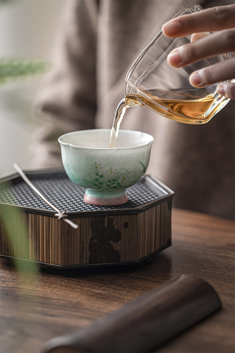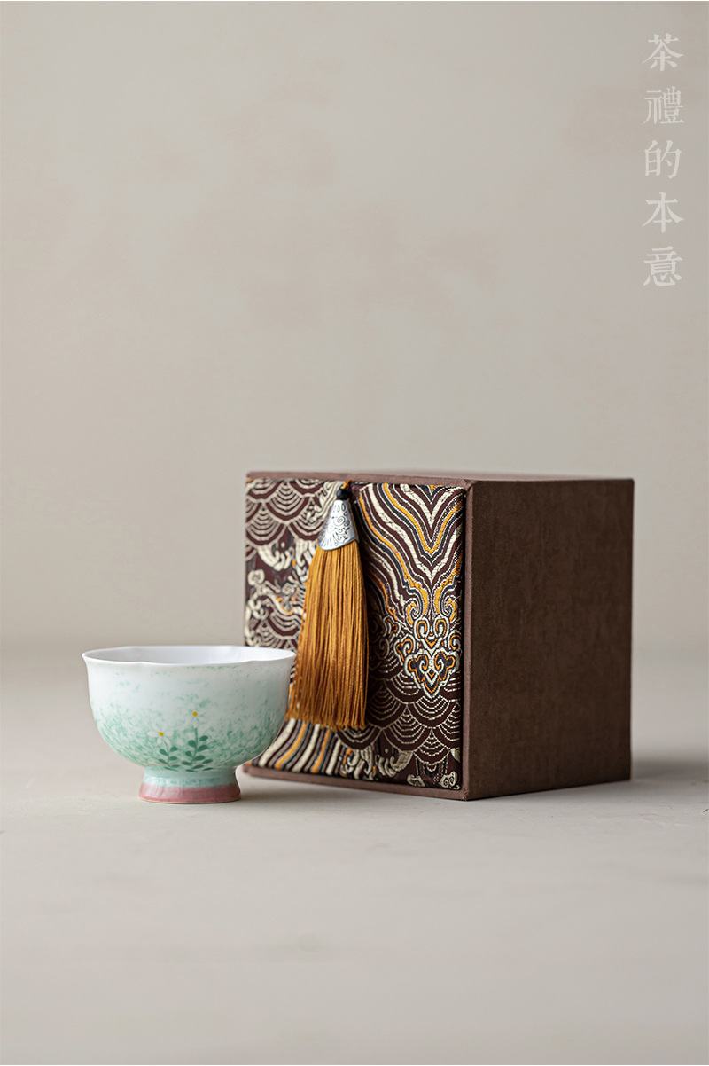 手作りの花を染めた茶の杯は禅意の中国式の茶道の布芸の茶の杯を敷きます。