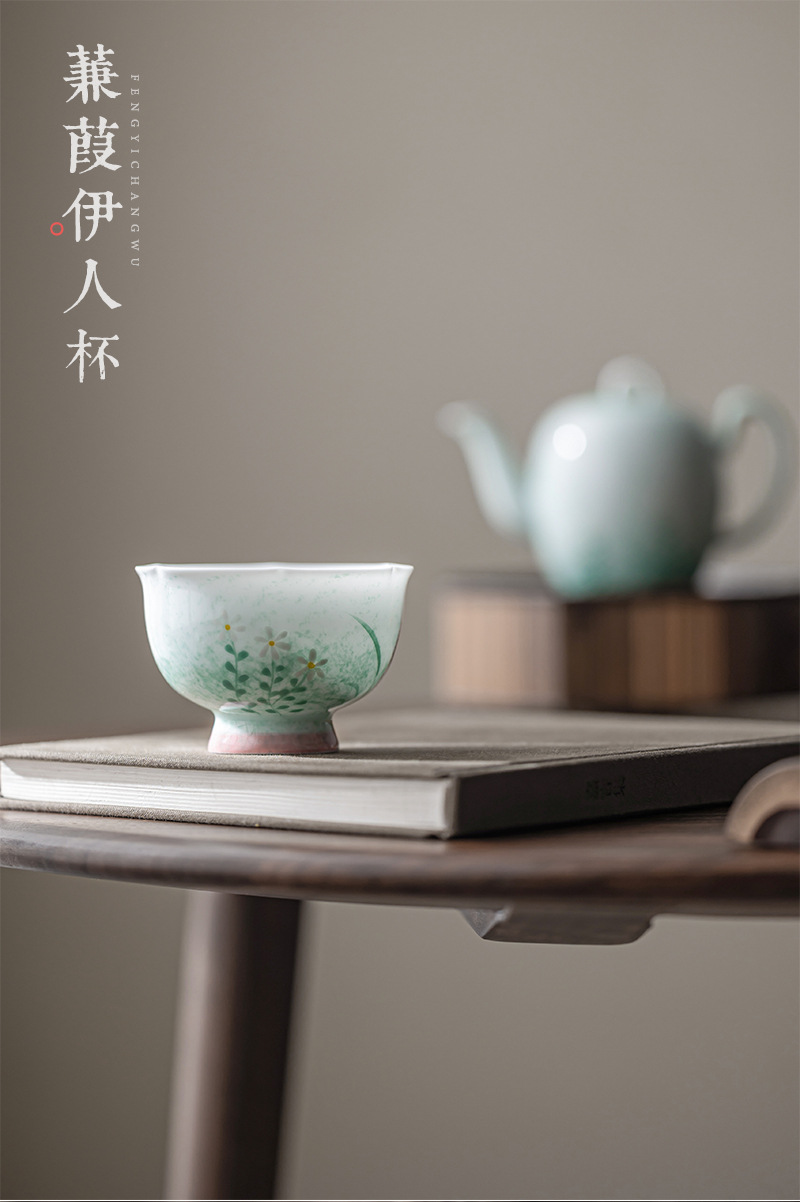 新中式手绘紫藤花茶盏品茗单个家用陶瓷杯室内喝茶杯品茗杯茶器