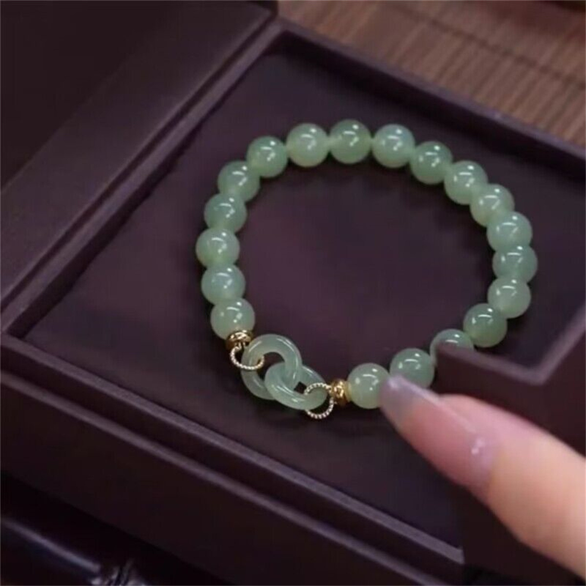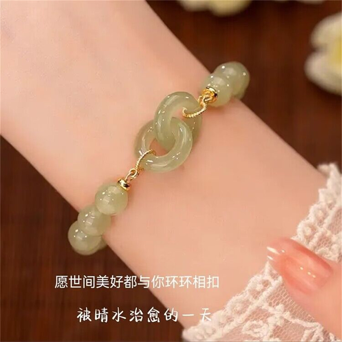 小清新碧玉色双輪ブレスレット女性桃花平安ボタンファッション百合手串観光地区の人気アクセサリー卸売り