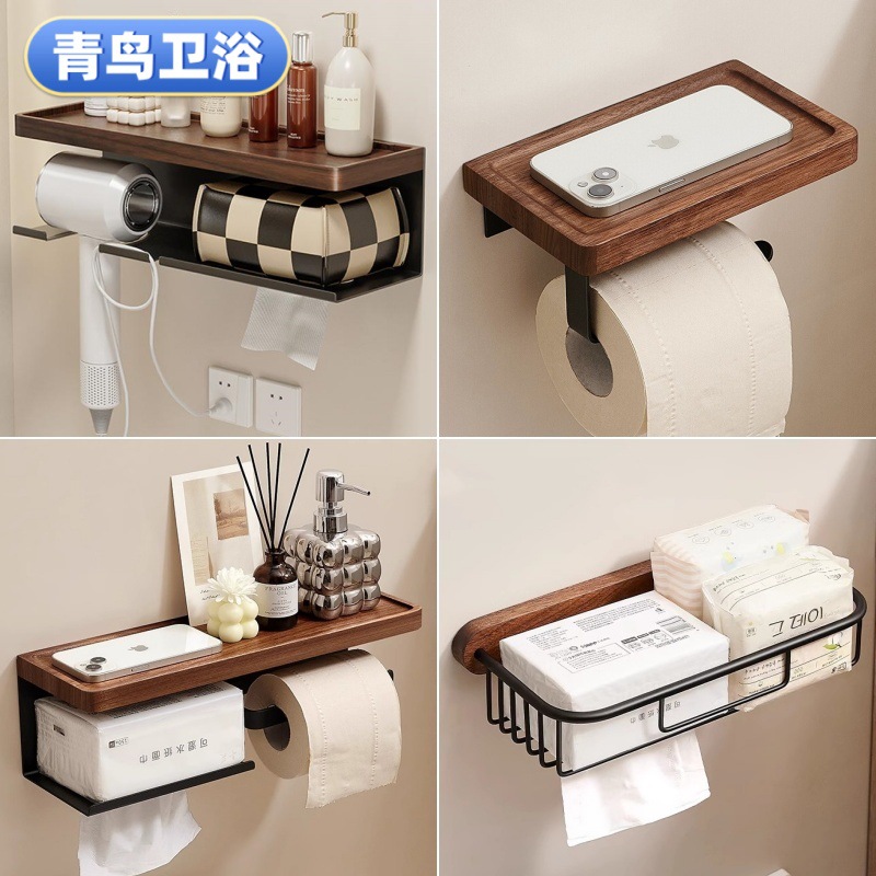 胡桃木卫生间厕纸盒免打孔浴室厕所洗手间抽纸巾洗脸巾收纳置物架