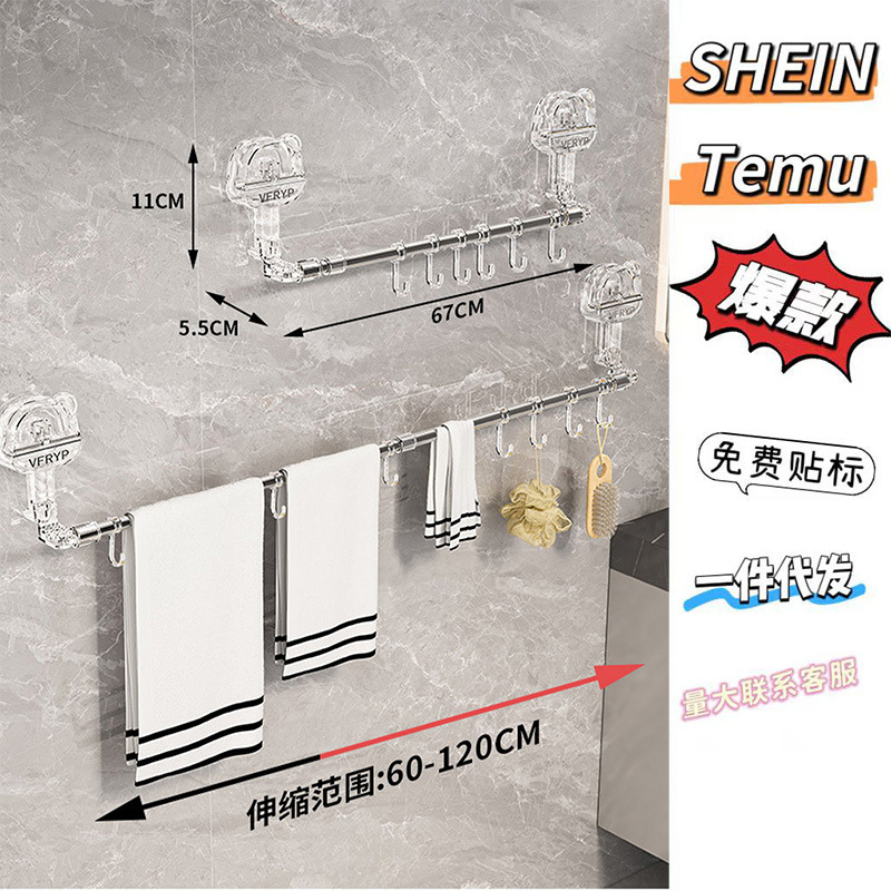 伸縮式吸盤式タオル掛け、壁掛け式トイレ/バスルーム用ハンガー、壁掛け収納ラック、伸縮式、穴あけ不要