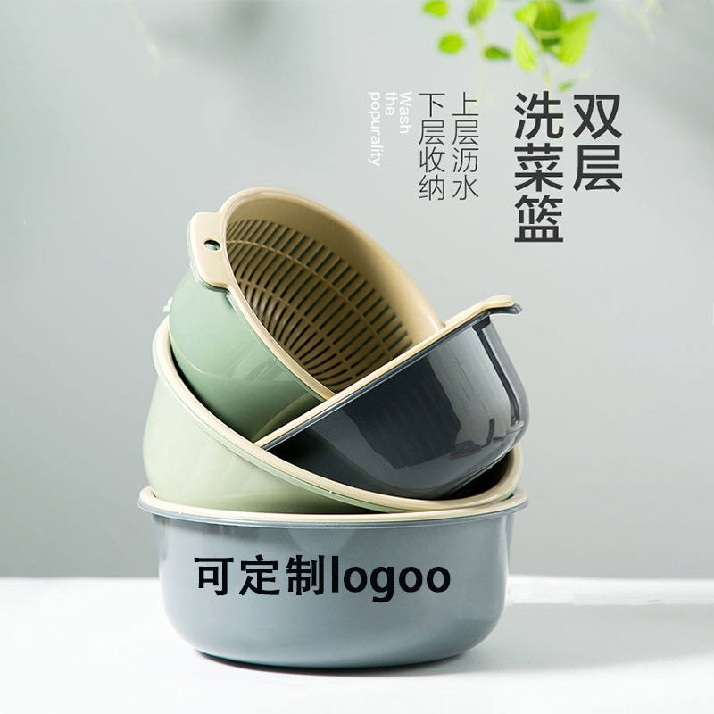 家庭用の水たまりかごの二重の野菜のたらいの台所の家庭用の多機能のプラスチックの円形の水たまりの果物のかご