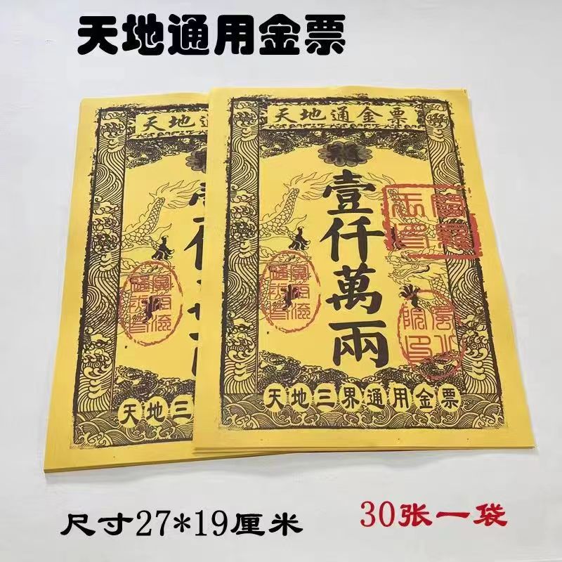 一袋30枚の通用金券路通金券黄券焼紙祭拝仏上墓黄紙焼紙銀券