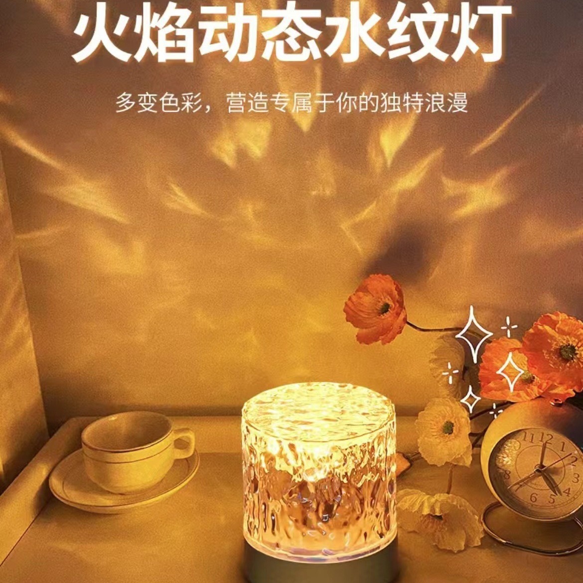 ネット赤回転動的炎水波紋雰囲気灯投影星空ロマンチック寝室ベッドサイドins風小夜灯