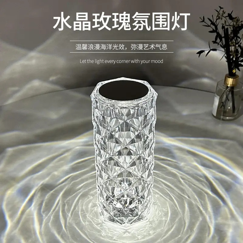 越境対応、工場直販-大きなバラのクリスタル雰囲気ランプ、ベッドサイドナイトライト、テーブルランプ、タッチ式装飾ランプ