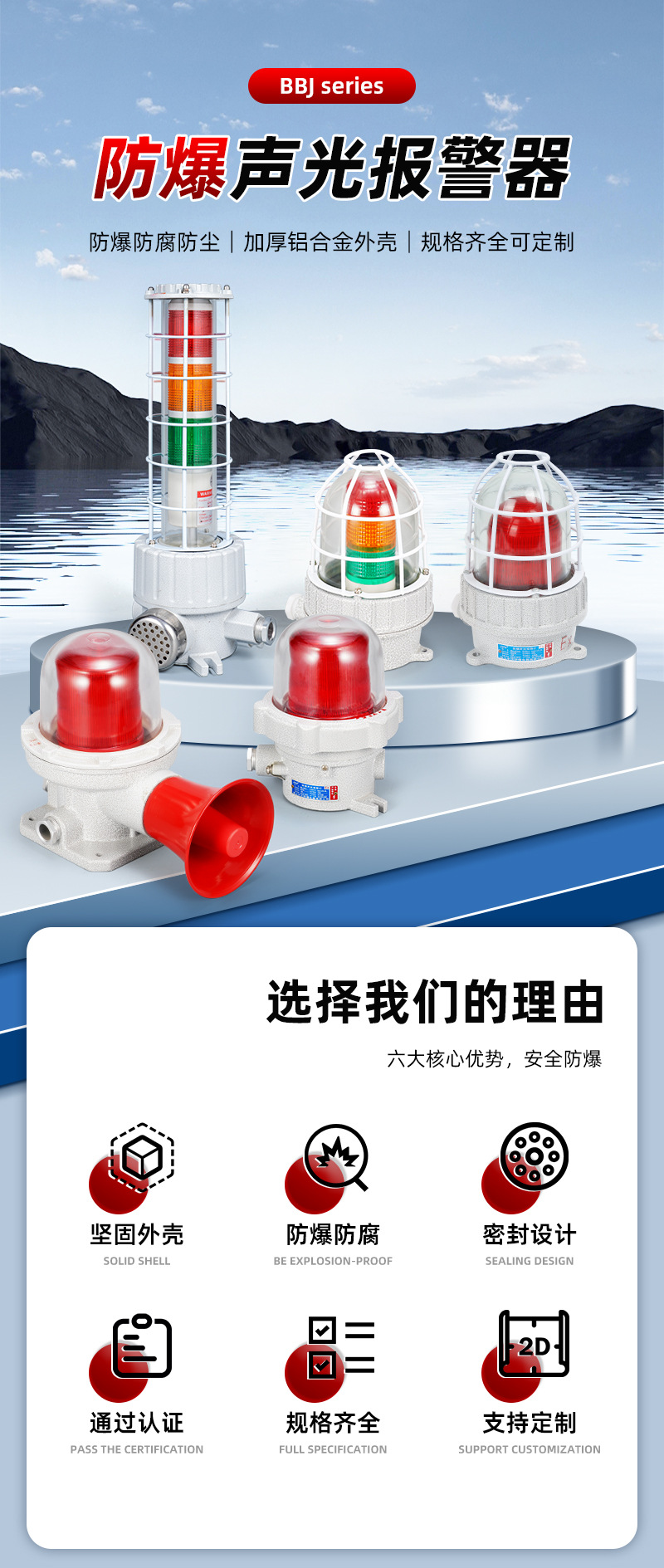 BBJ防爆音光警報器高デシベル点滅220V24V鉱山化学工場赤緑黄消防警告灯