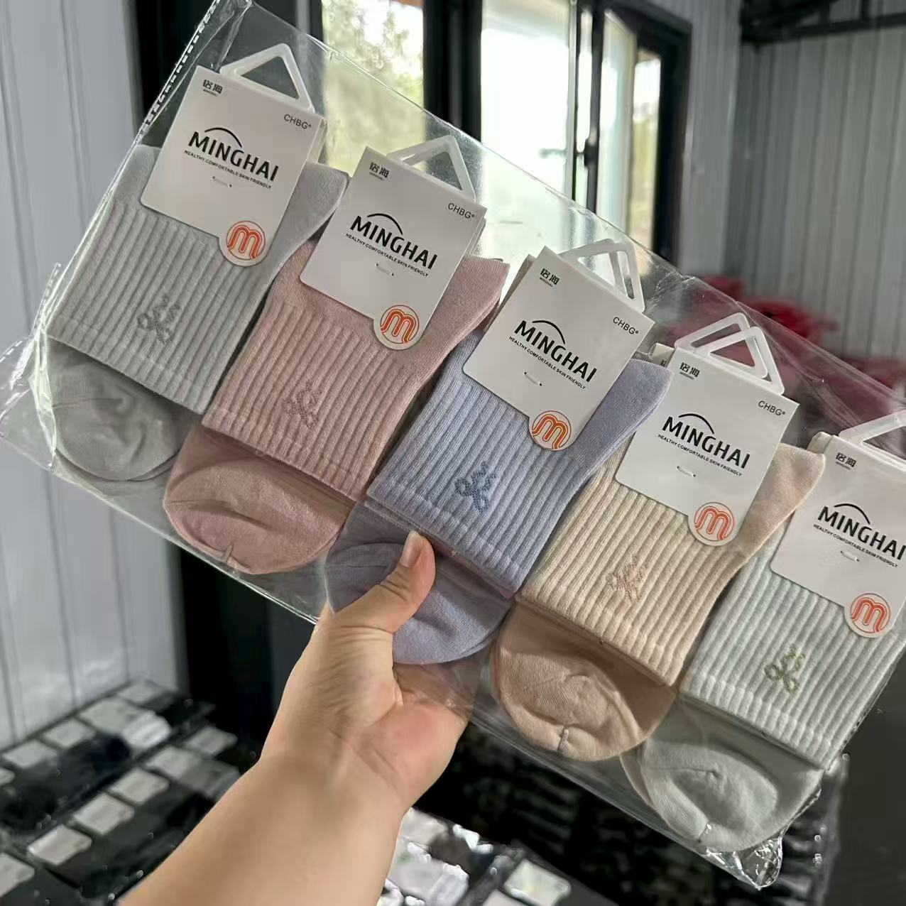 秋と冬の新しいミッドカーフスポーツソックス韓国スタイルの小さな新鮮なカジュアル通気性のある男性と女性のミッドカーフコットンソックス露店靴下卸売