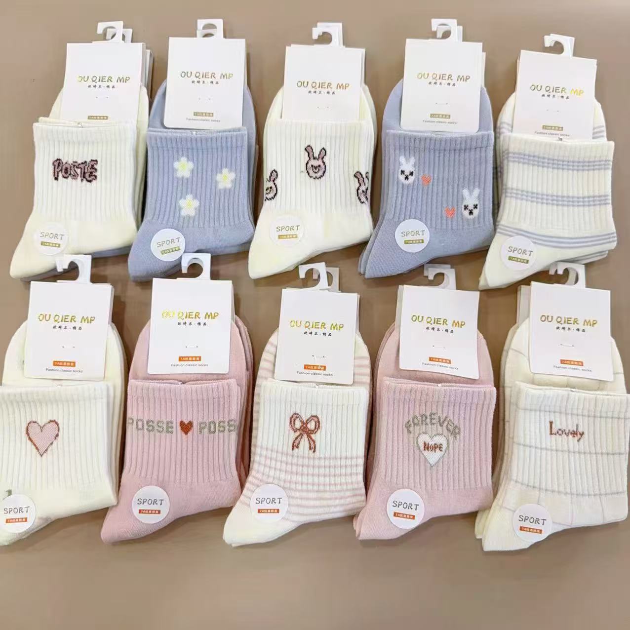秋冬新款中筒袜子女学院风甜美运动棉袜男女透气潮款小清新学生袜