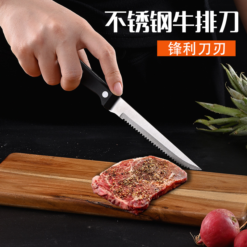 厨房酒店牛扒刀 西餐牛排刀餐具 PP塑料柄水果皮刀带锯齿喷漆刀肉