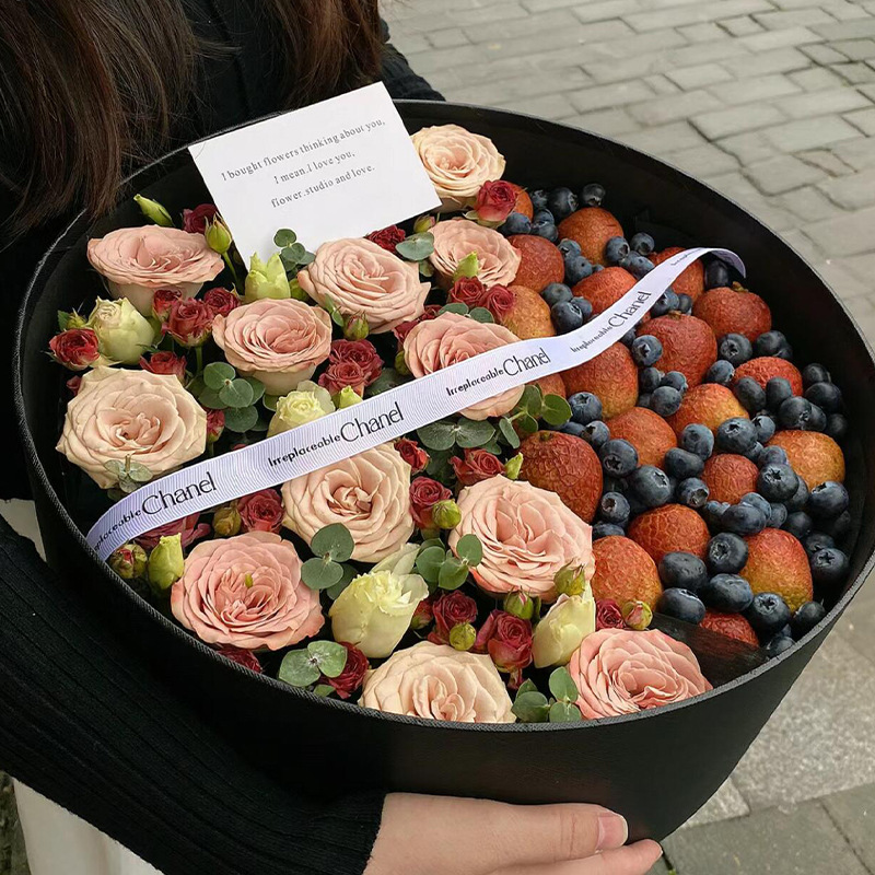 小包は防水の丸い窓を開けて花の果物の礼箱を運びます。
