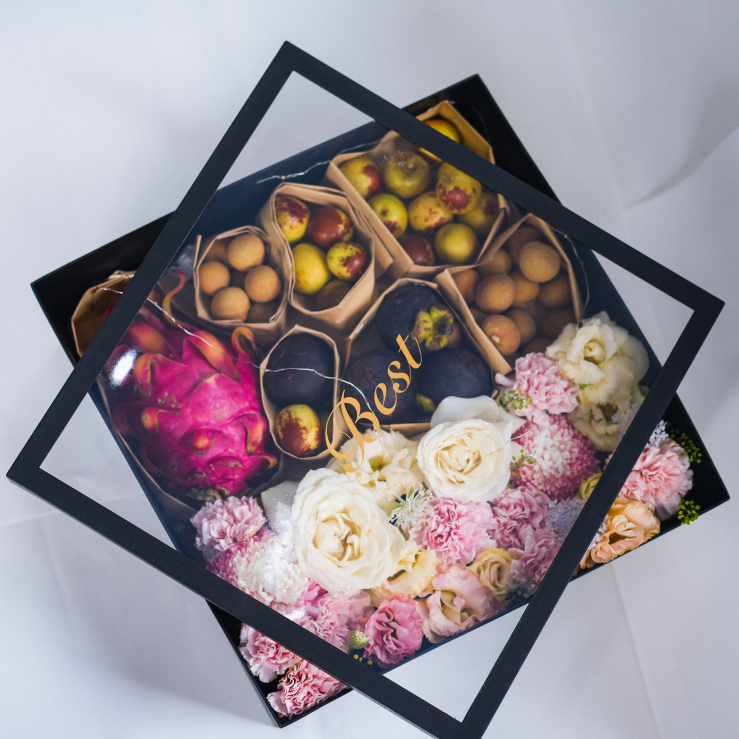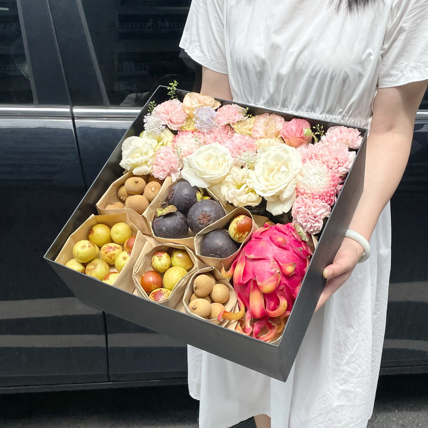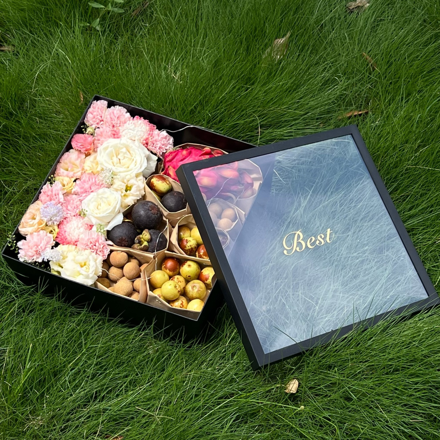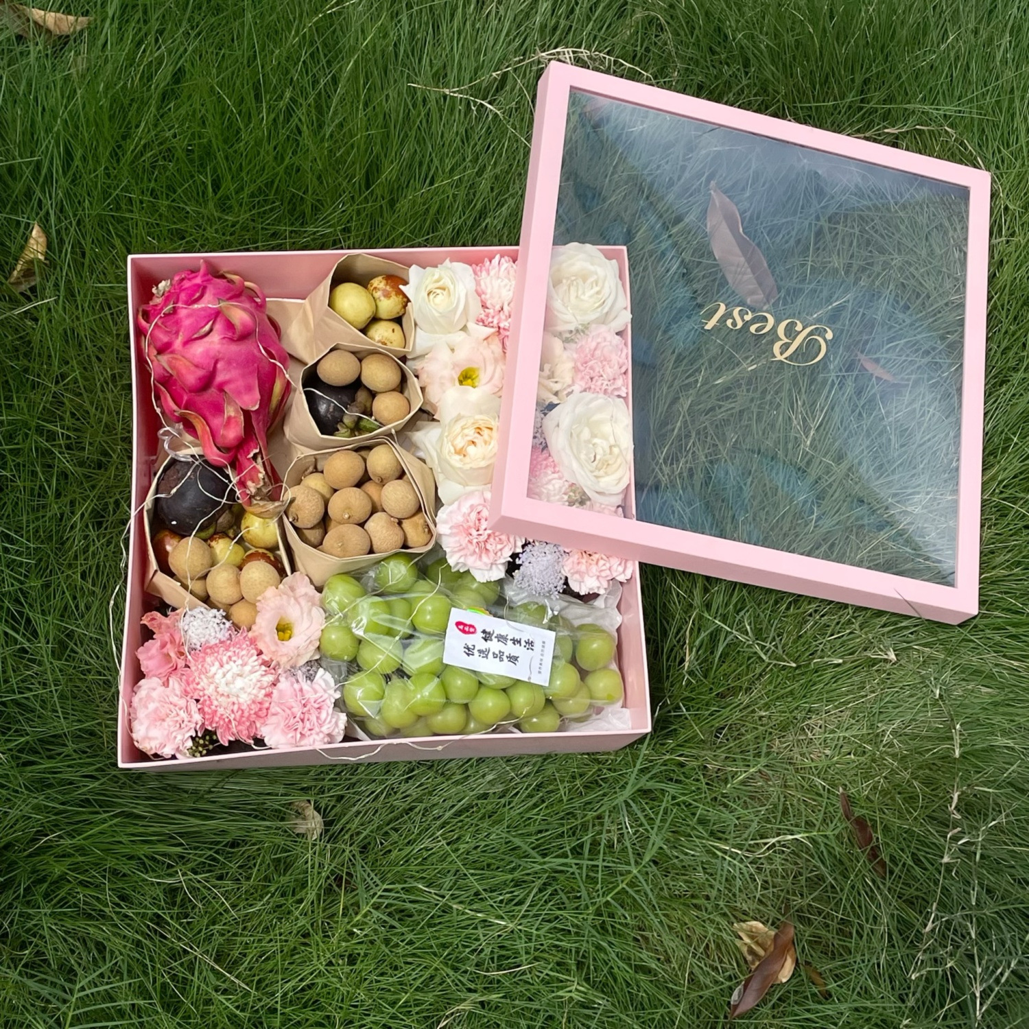 小包の透明な大きな箱の正方形の花の果物のギフトボックスは彼女にプレゼントします。