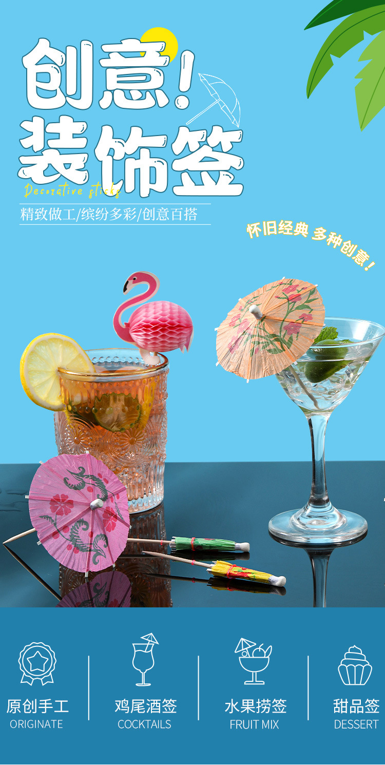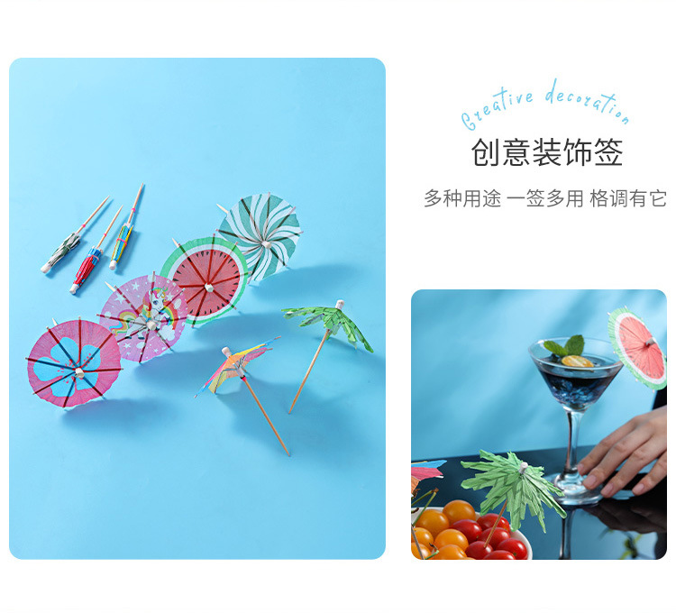 小伞签鸡尾酒装饰伞签一次性水果签果插牙签雨伞蛋糕竹签装饰签