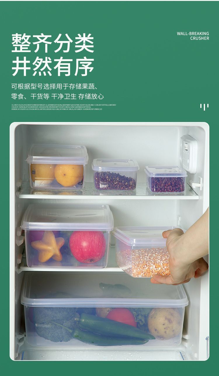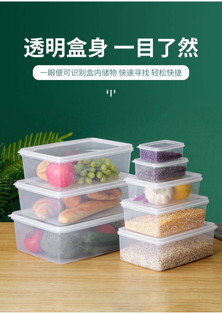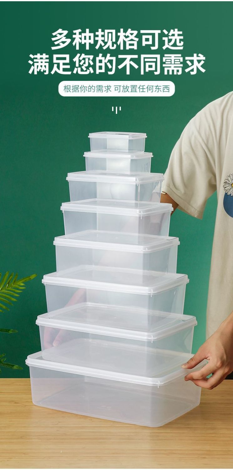 タッパーボックスプラスチック透明ボックス長方形冷蔵庫冷蔵専用シール食品グレードキッチン収納ボックス商用