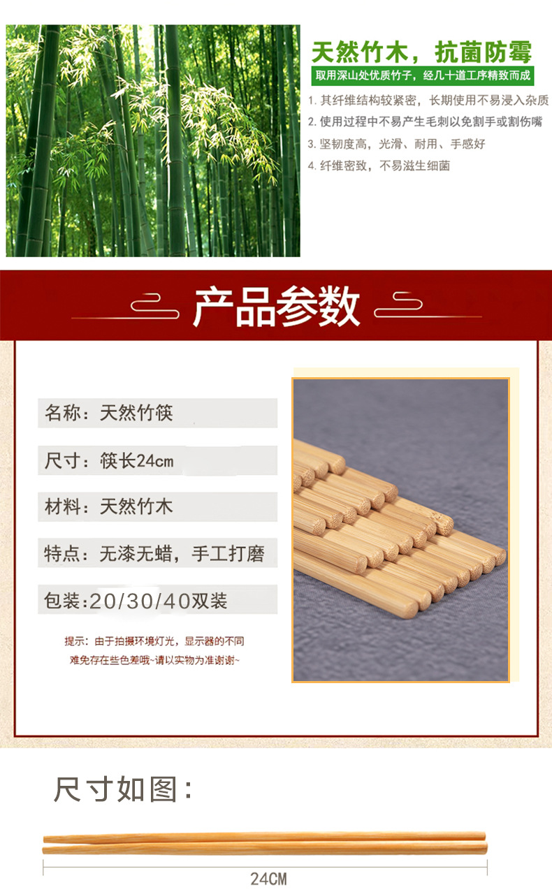 万鑫佳ホテル竹箸多規格包装竹箸卸売り20足30足45足無節竹箸