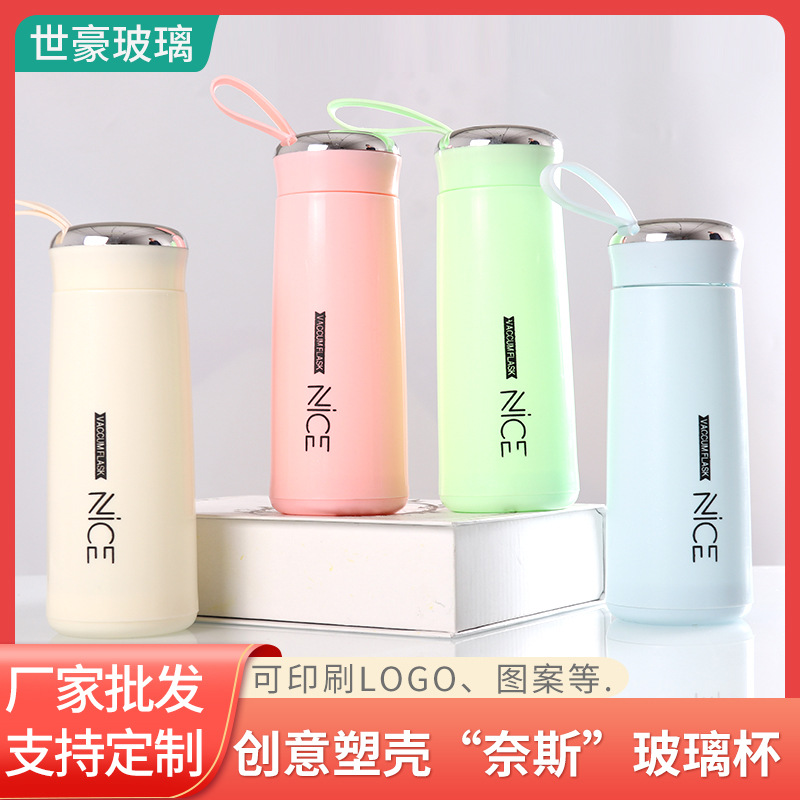 工場卸売ポータブルネスカップnis風マカロン色400mlガラス瓶ギフトイベントプラスチックシェル水カップ