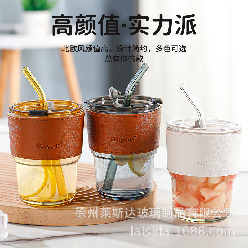ネット赤500mlガラス二重カップストロー付き広告ギフトカップ印字ロゴ家庭用お土産