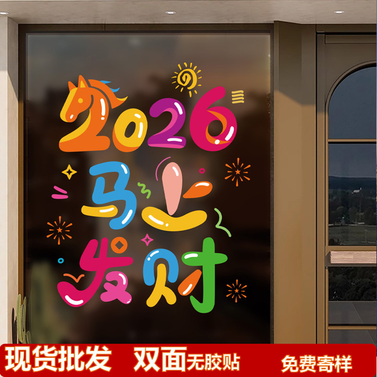 2026新年多巴胺系列橱窗玻璃门窗花 圣诞新年店铺装饰贴纸窗贴