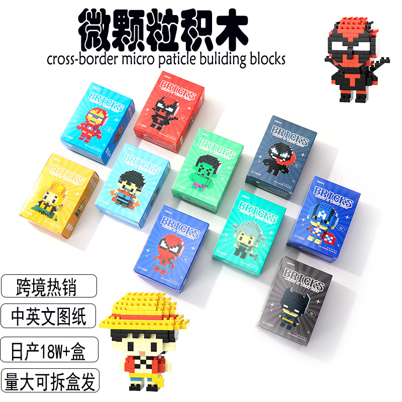 跨境热卖玩具爆款网红盲盒积木微颗粒复仇者联盟火影忍者拼装玩具