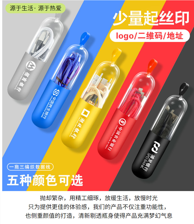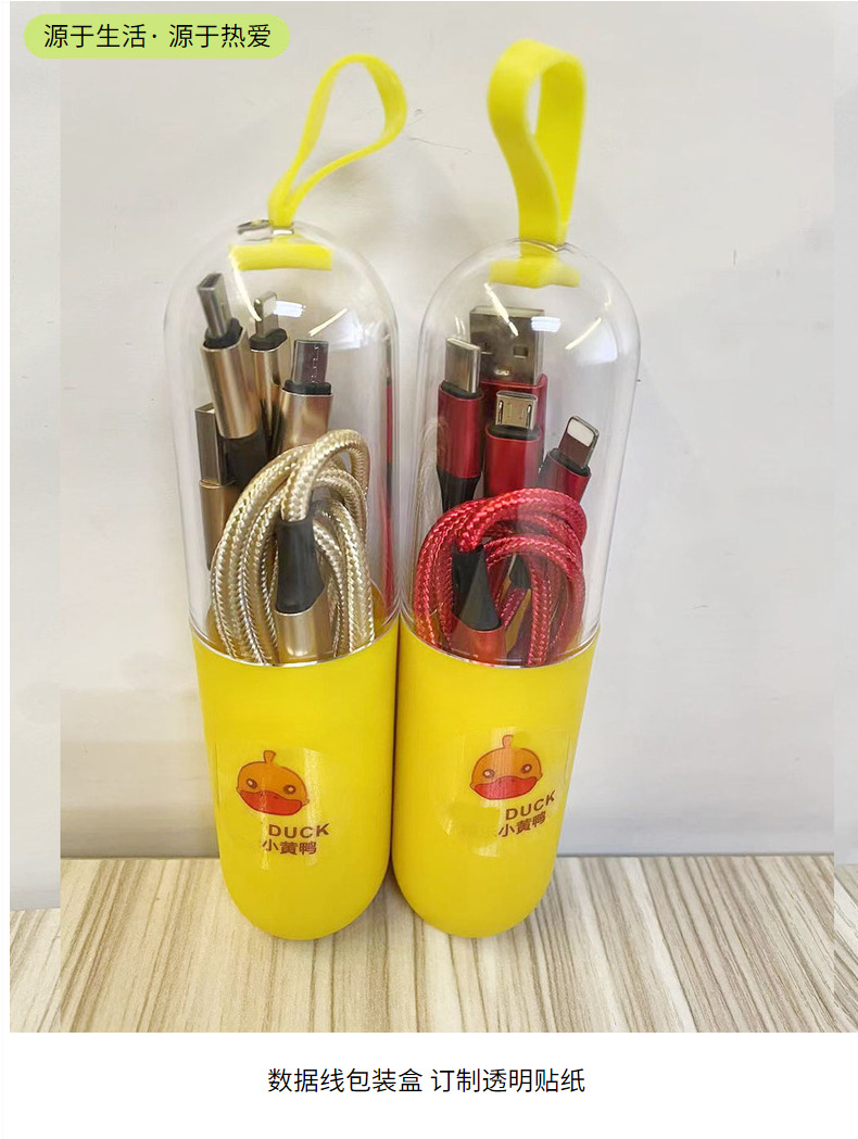一引き三データ線小プレゼントとロゴ包装工場小黄鴨帯透明シール充電線包装箱バッチ