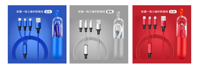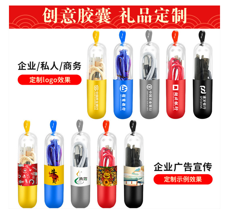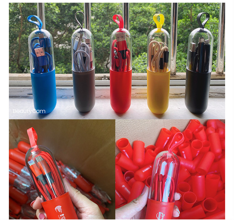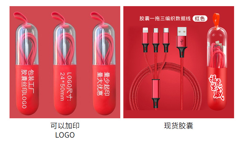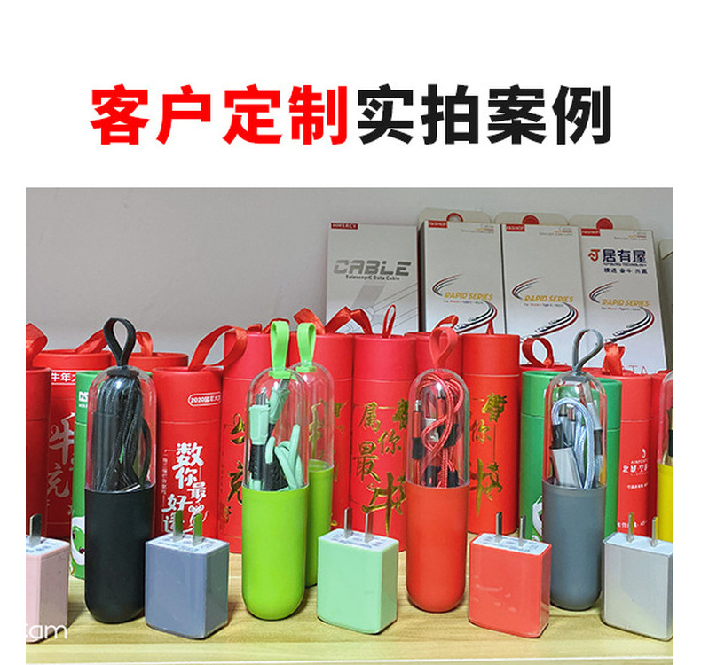 プロモーション活動用ギフト包装 新型紙筒 赤筒 紙缶 ギフト用 3in1 データケーブル 1対3 編み込み印刷