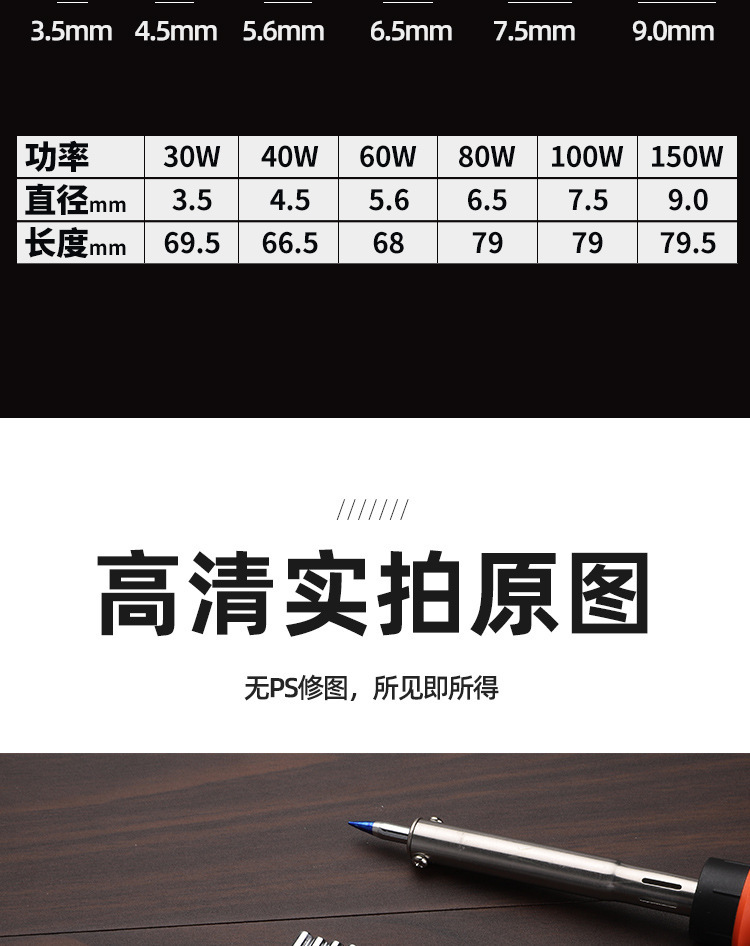 はんだごてヘッドメーカー外熱尖頭通用60W40ワット30W150W80W100純銅電気はんだごてヘッド