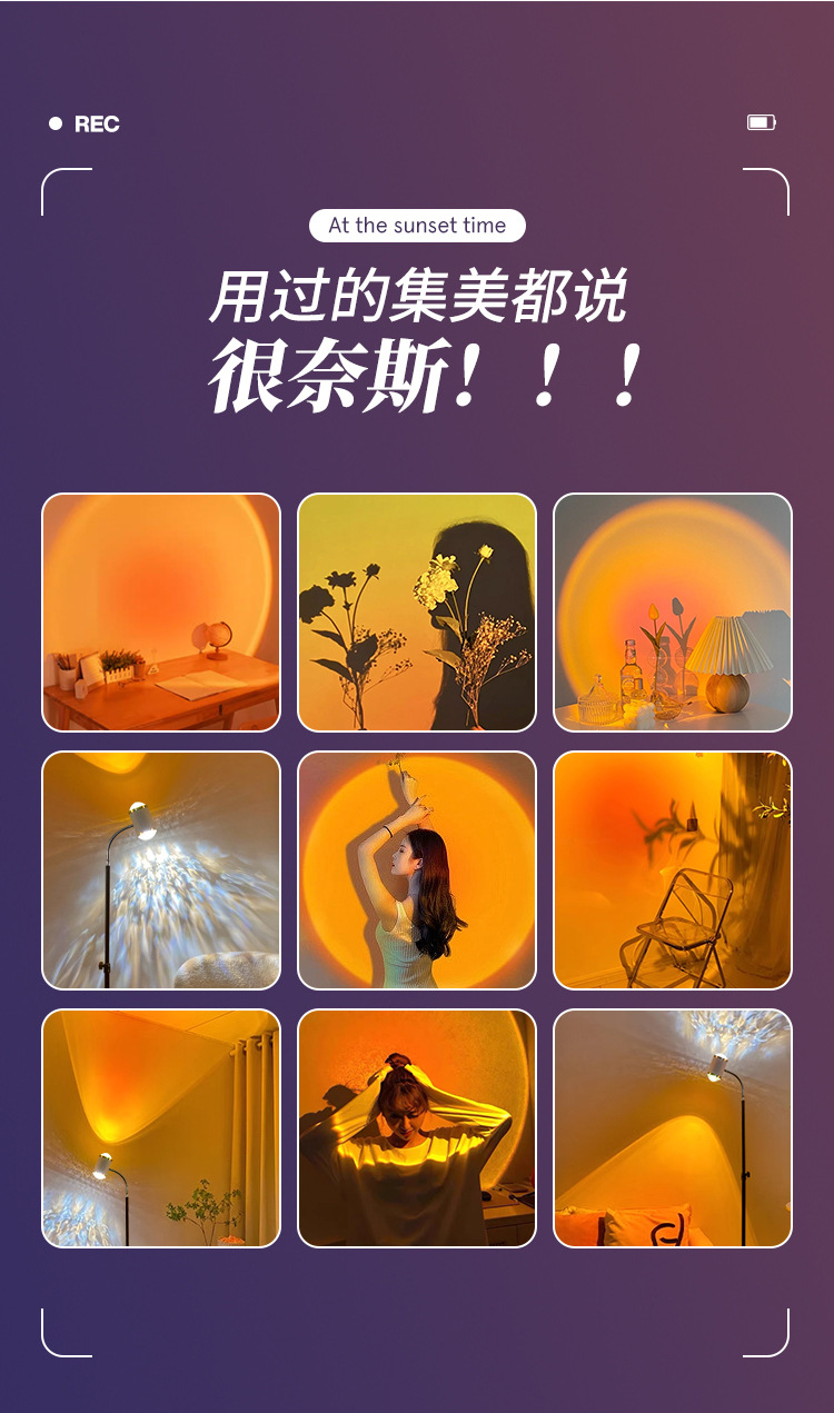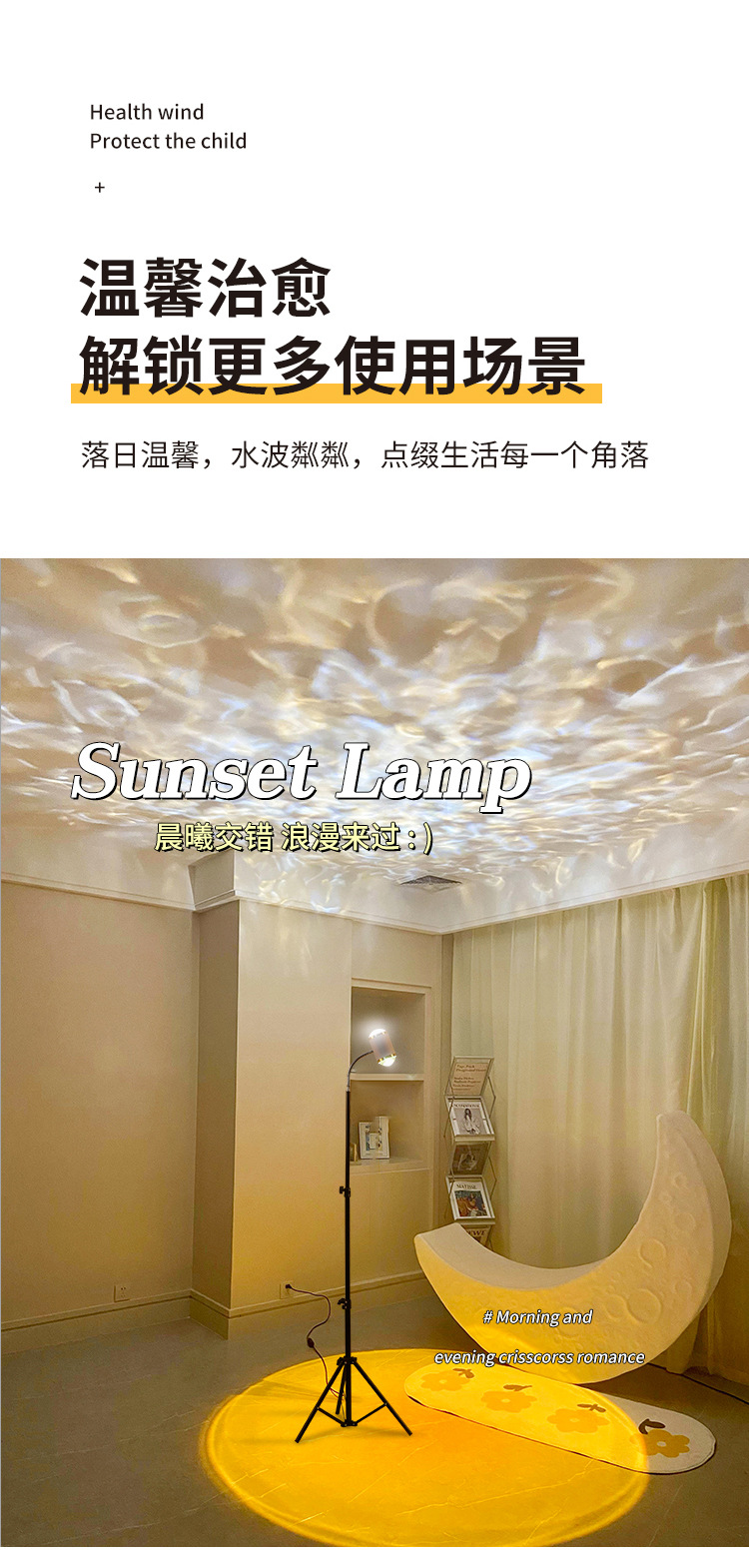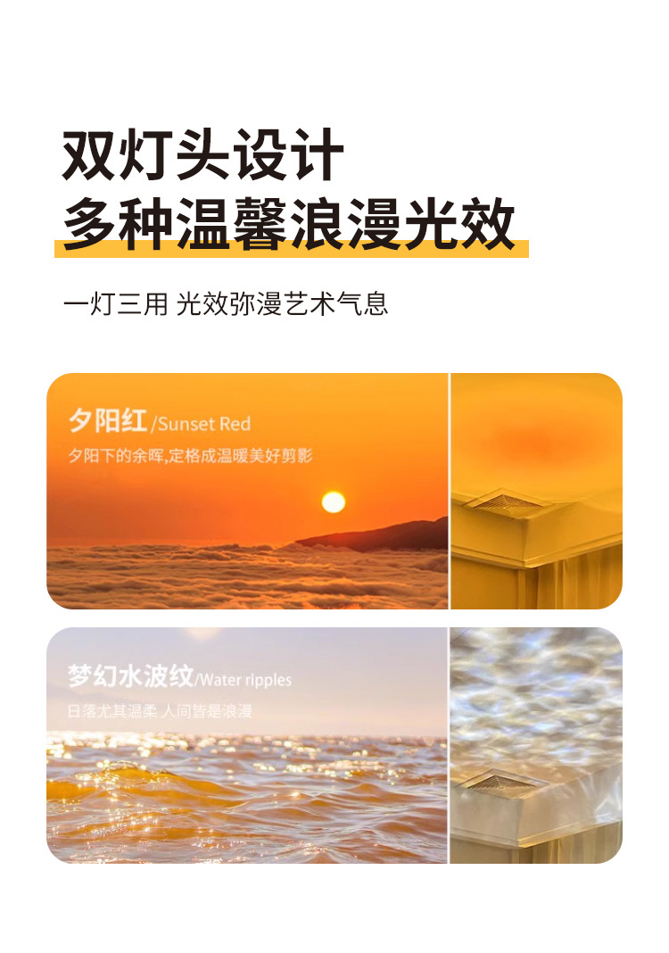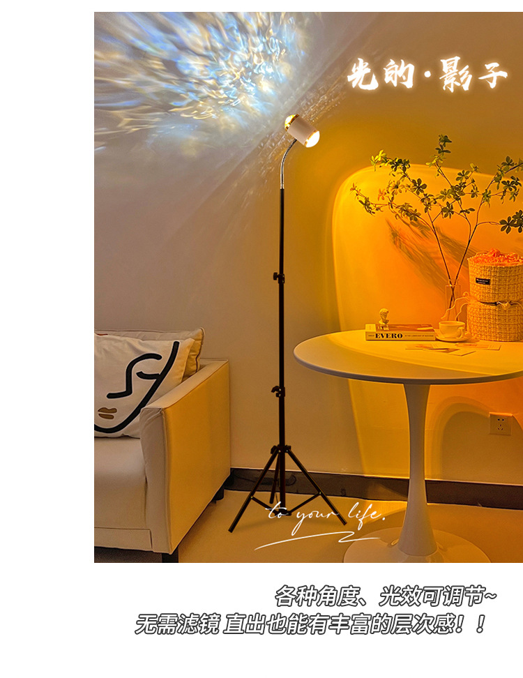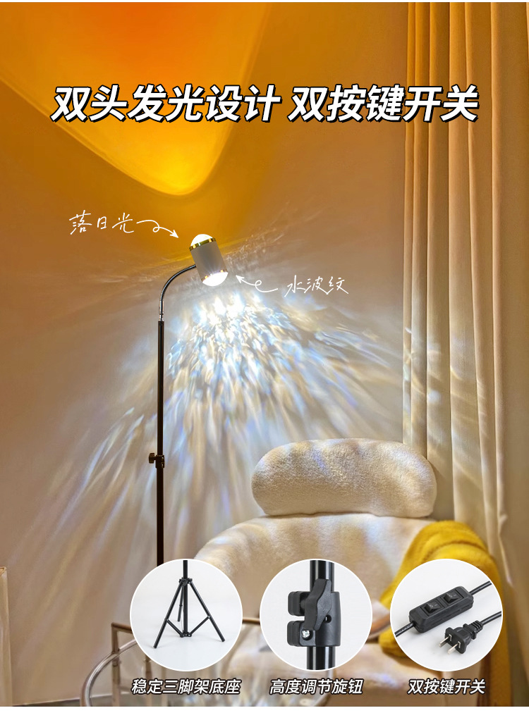 网红直播间双头夕阳水波纹氛围灯客厅卧室落日水波纹落地LED投影