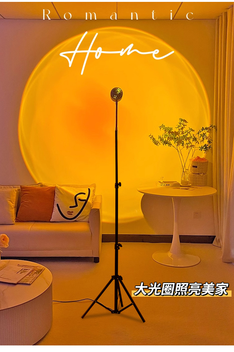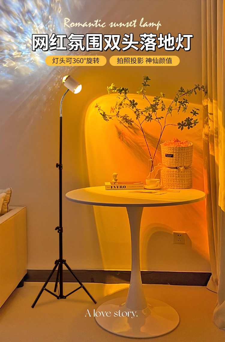 落日水波紋落地灯防眩し無閃光ネット赤双頭夕日雰囲気灯生放送背景装飾電気スタンド