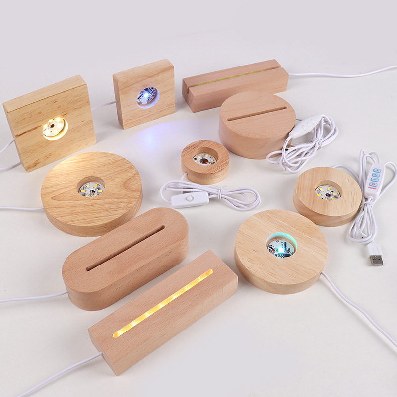 発光長方形ナイトライト台座木製usbスイッチ台座アクリル3dイルミネーション木製台座