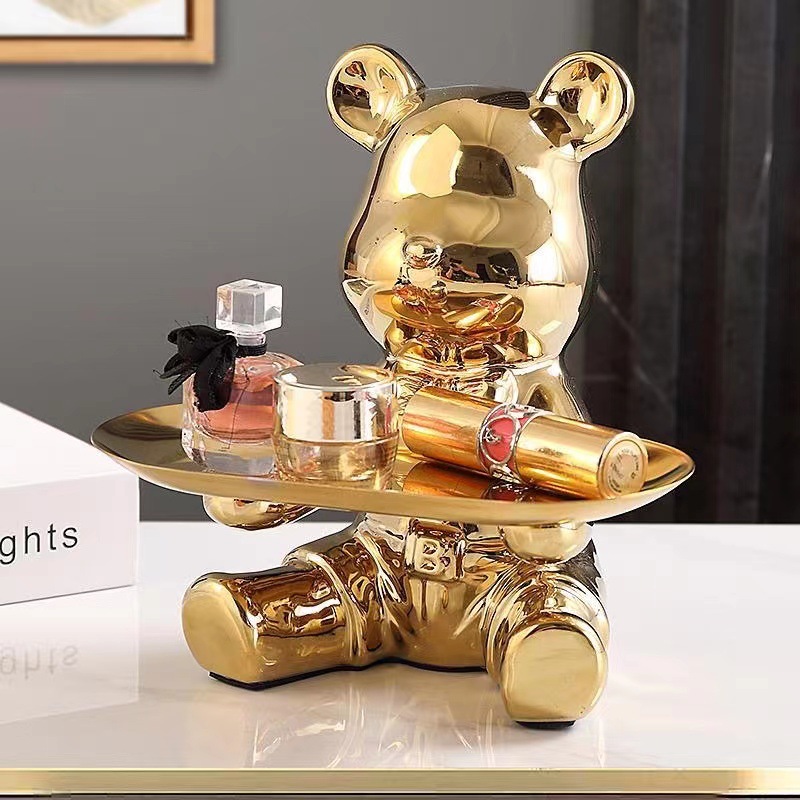 陶器製の暴力的なクマのトレイ、玄関の鍵収納、置物、リビングの装飾、収納、クリエイティブなアイテム