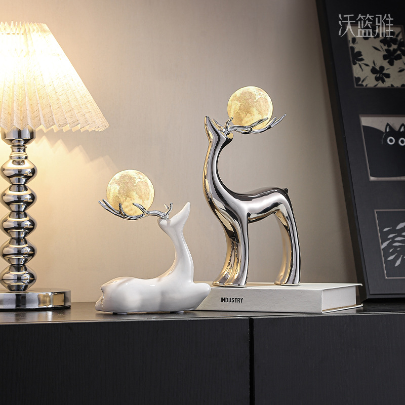 现代轻奢招财麋鹿摆件高档客厅酒柜电视柜装饰品玄关创意小鹿摆设