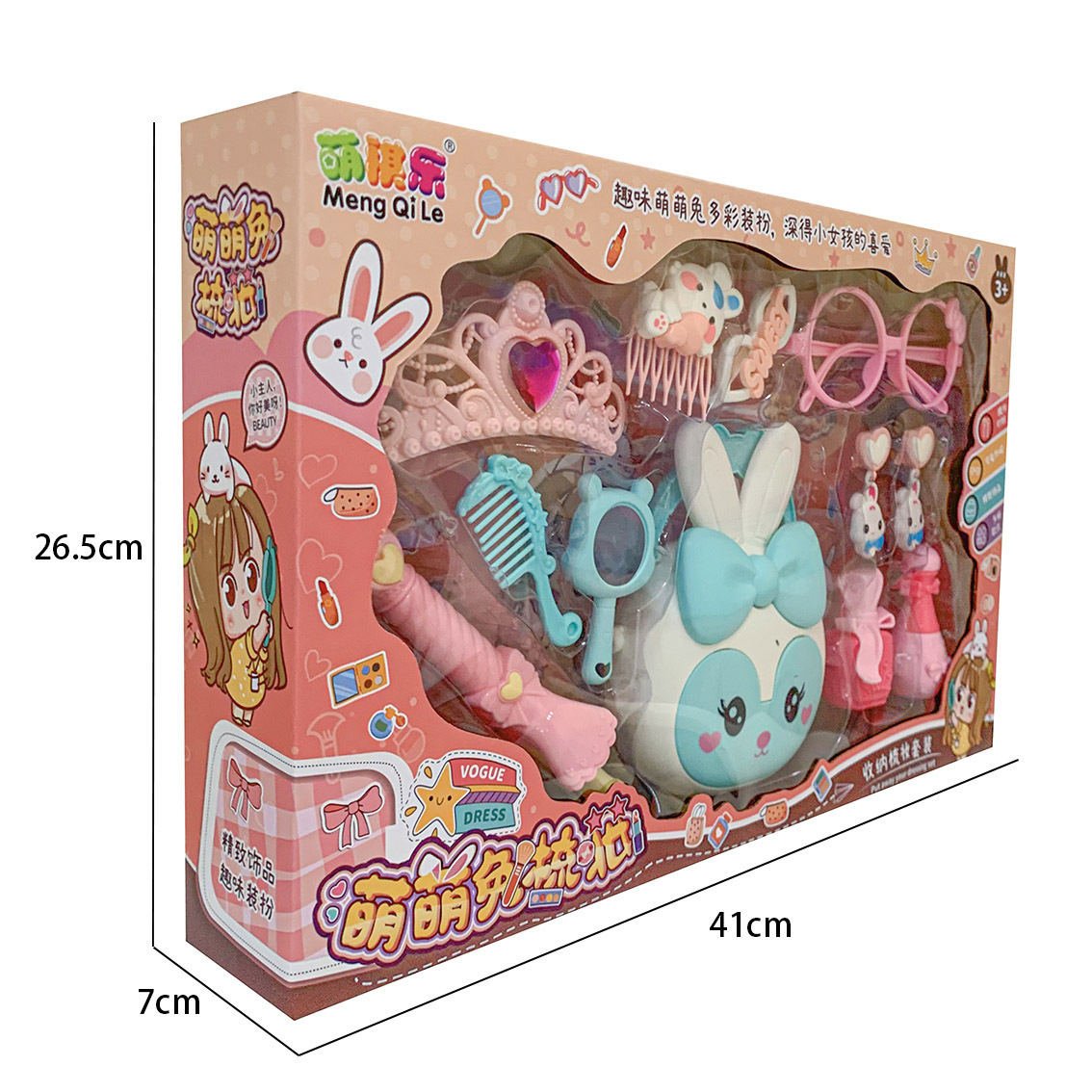 子供の女の子のおもちゃのままごとのビデオの小さい萌兎のハンドバッグの化粧台のアクセサリーのスーツのキャラクターは卸売りを模擬します。