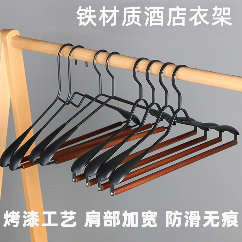無垢材と鉄製の衣類ハンガー、ホテル用金属製幅広肩ハンガー、跡が残らないハンガー、多機能鉄木製衣料品店、軽奢スタイル