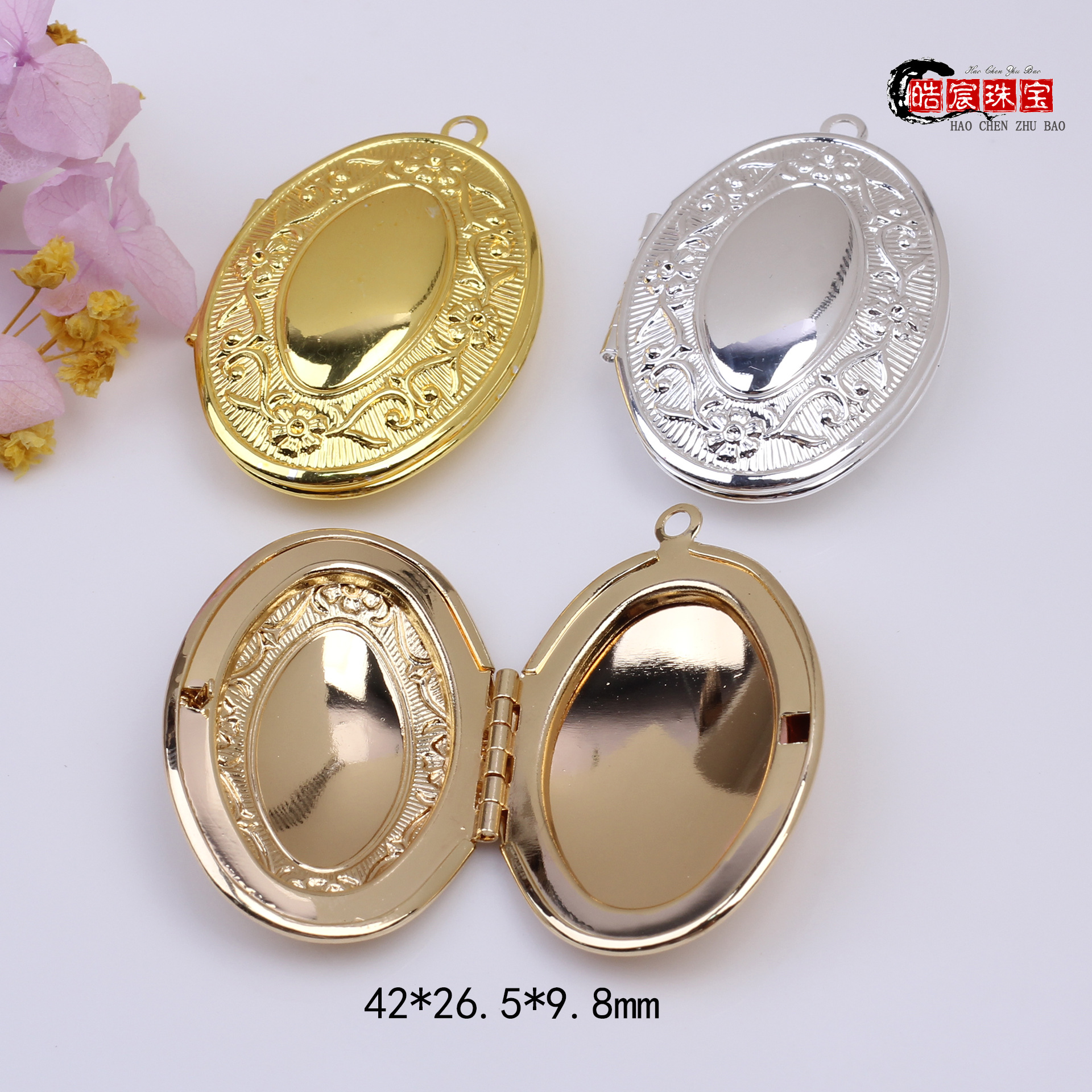 純銅相箱22mmは桃のハート型のハート型の愛が合うカップルのハート型のアクセサリーの部品を入れることができます。