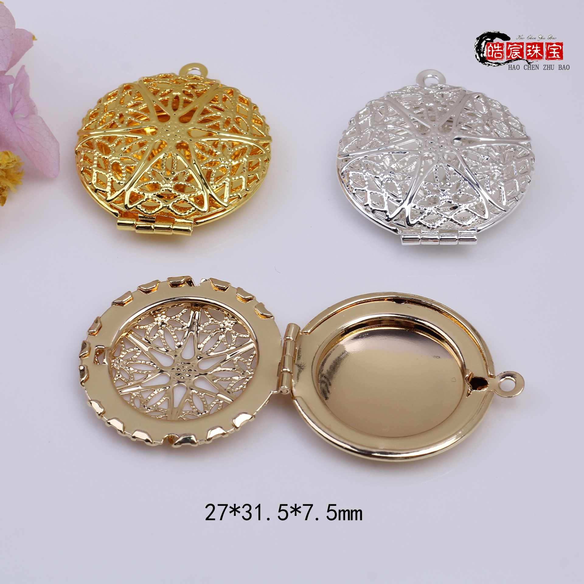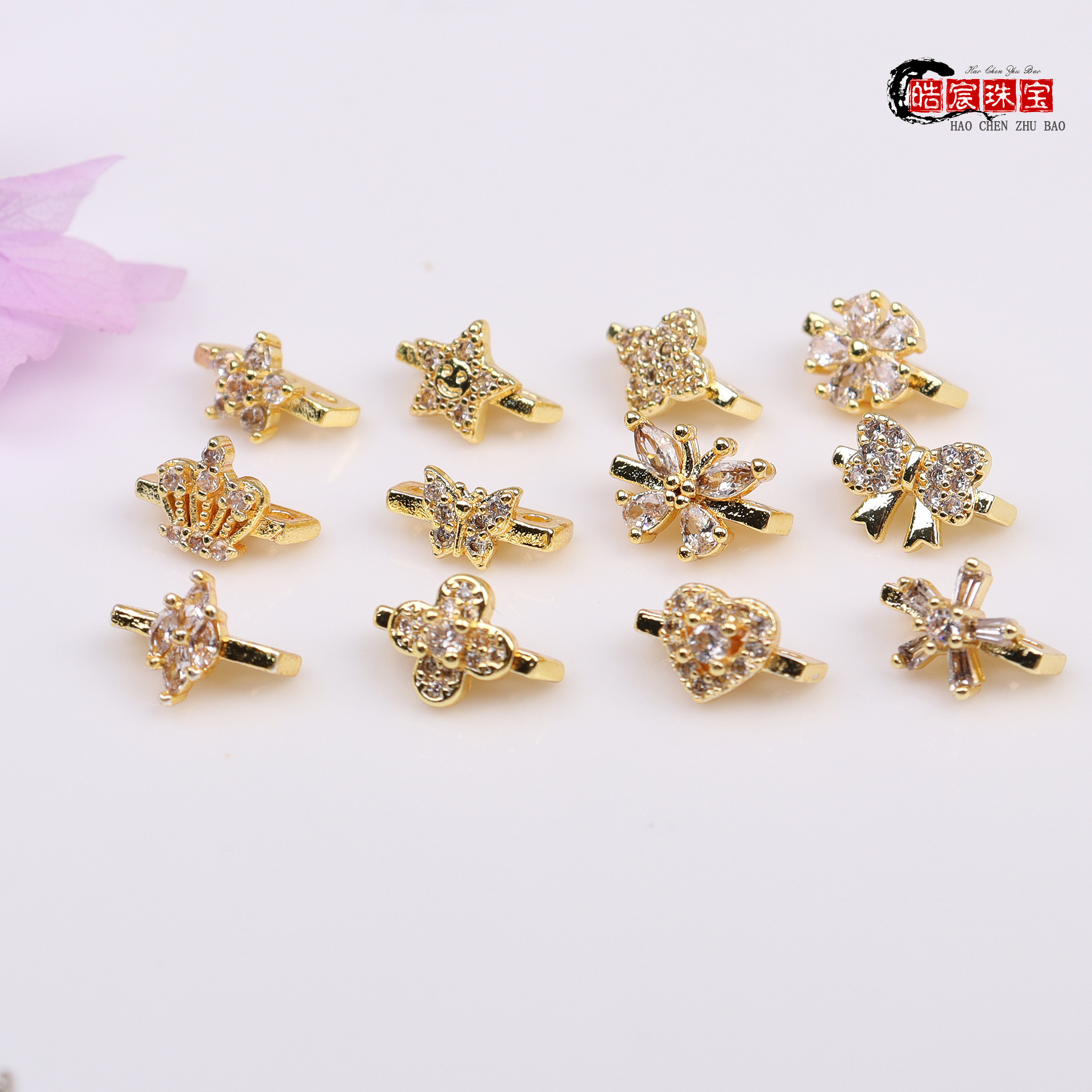 14k/18kバッグ金色保色花托透かし彫り花びらdiyブレスレット部品隔珠花帽材料