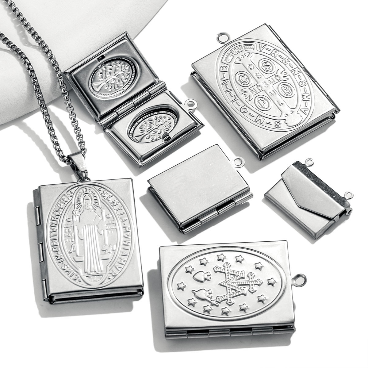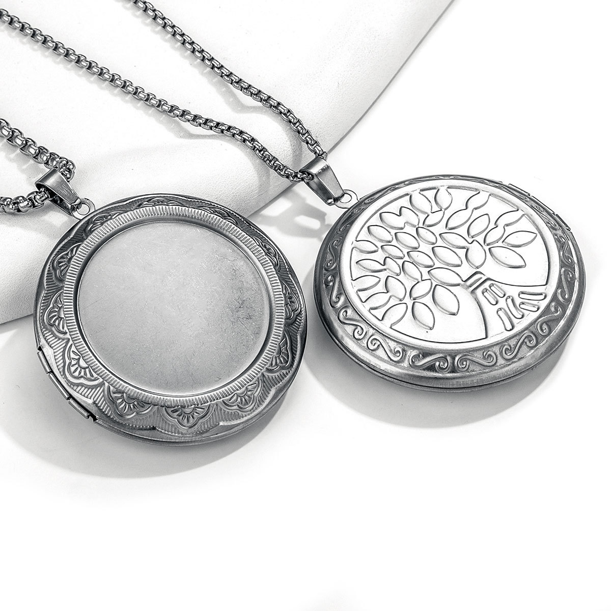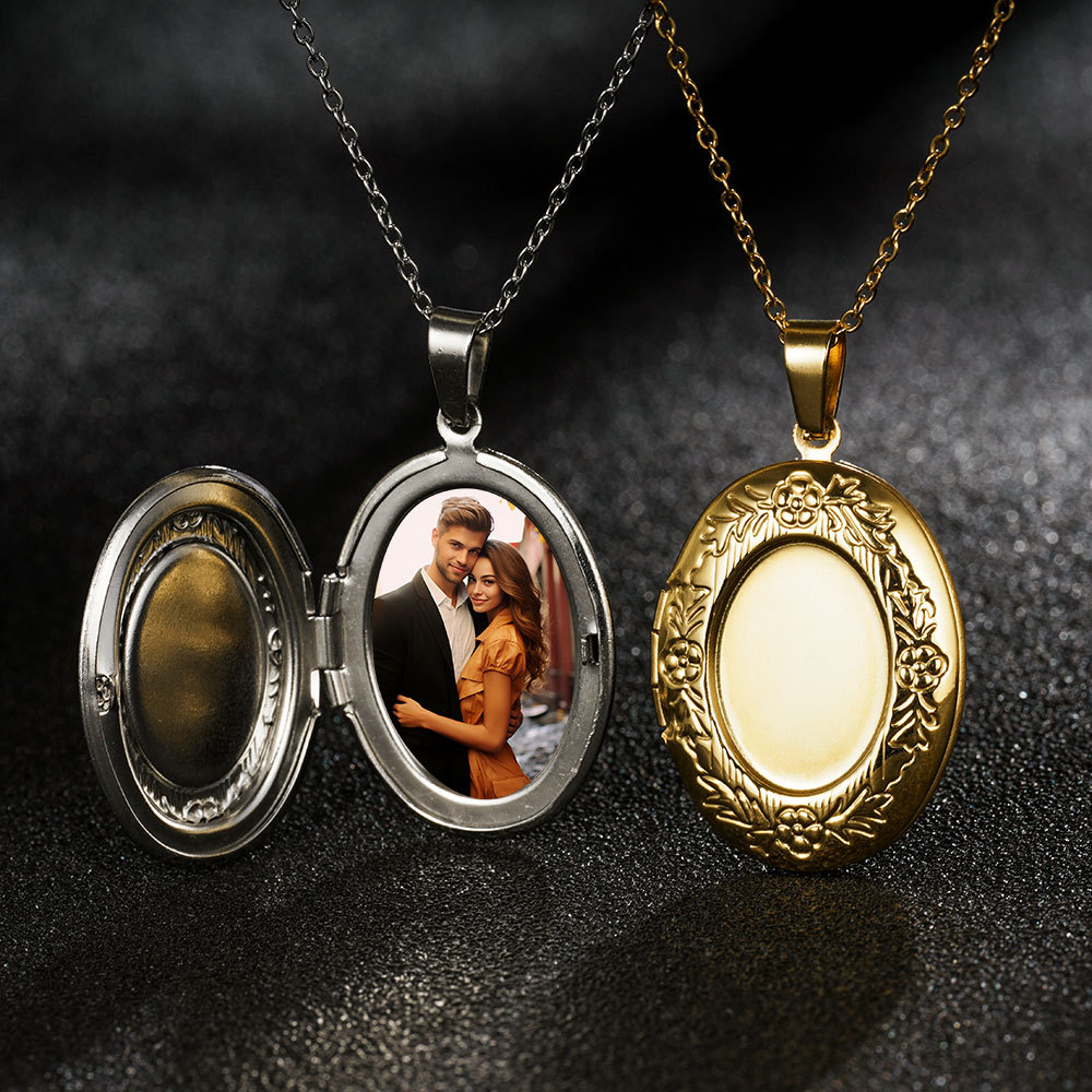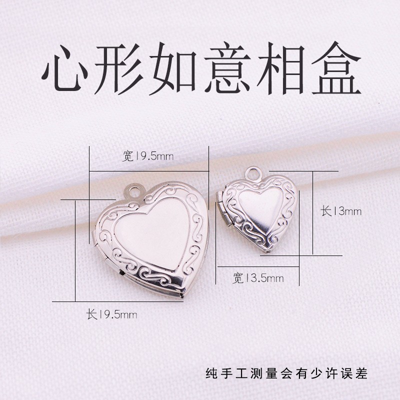 316L欧美跨境不锈钢复古雕花爱心相框项链可打开情侣diy相盒吊坠
