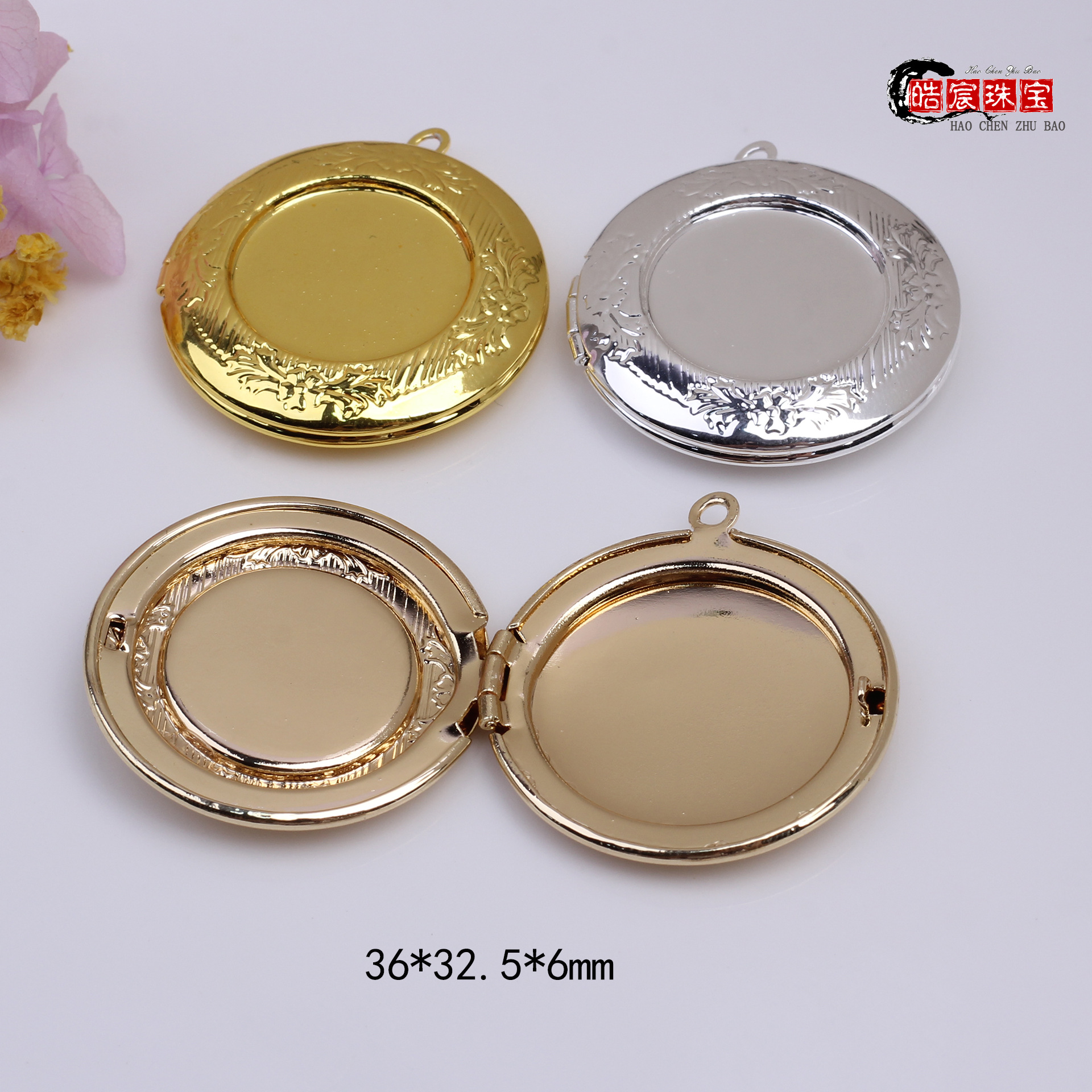ステンレスの円形の相箱のペンダントのレトロなレリーフの模様はdiyの創意のネックレスのアクセサリーの相箱にぶら下がっています。