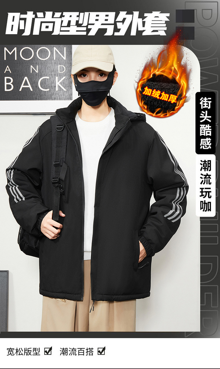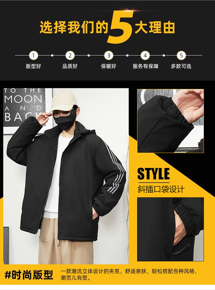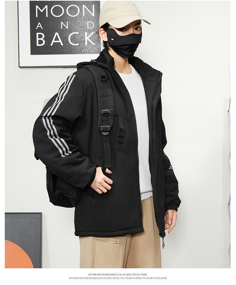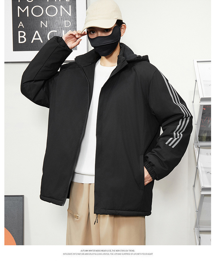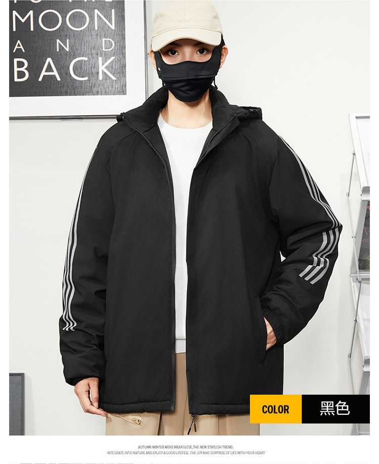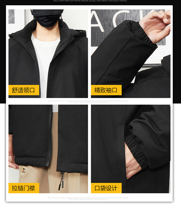 秋冬帽子付きファスナー現物保温黒色普通青年合体型カジュアルサイドスリットポケットジャケット