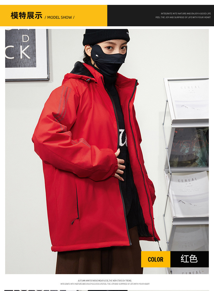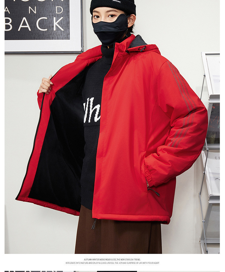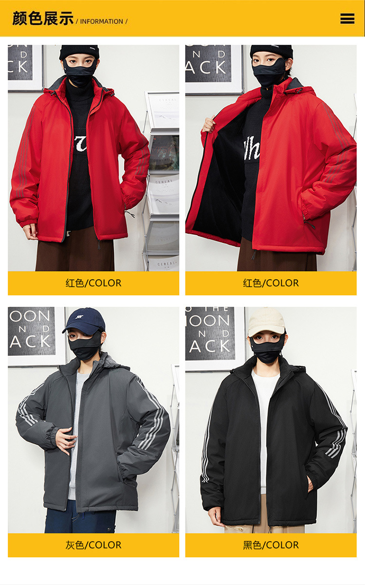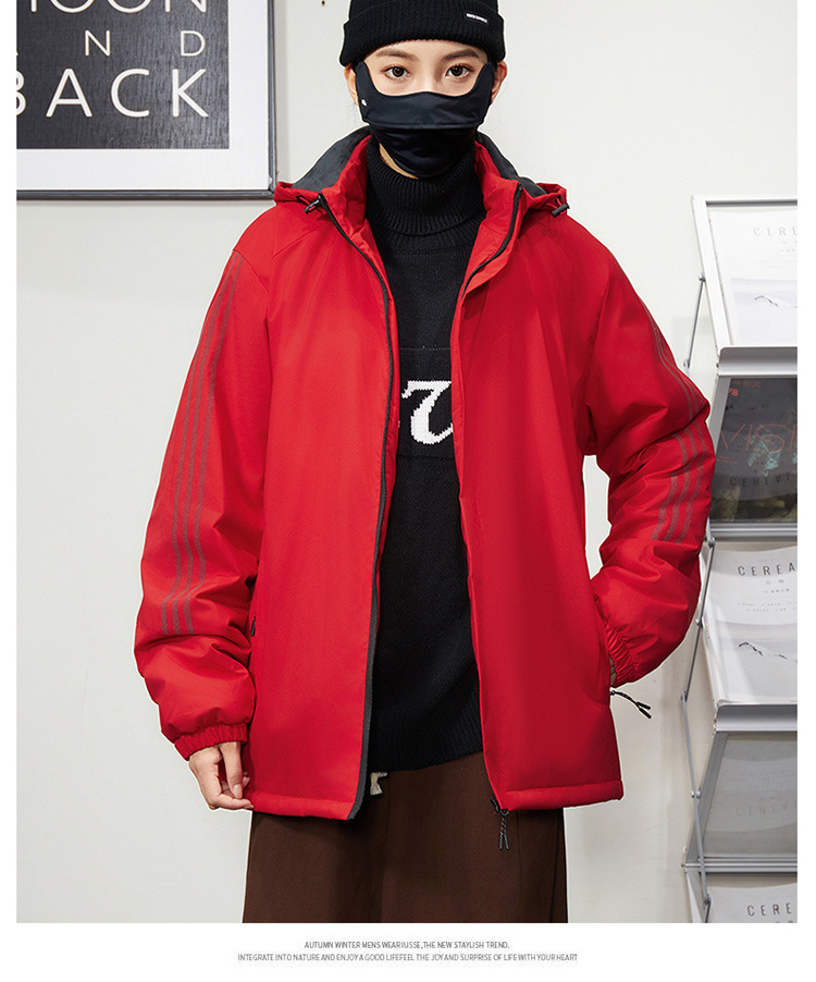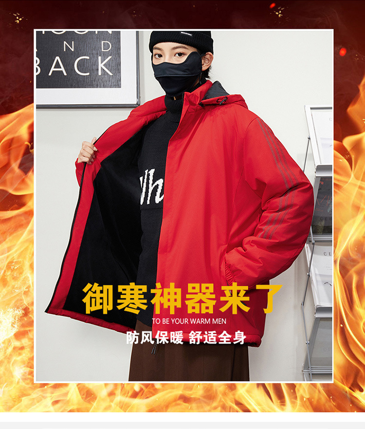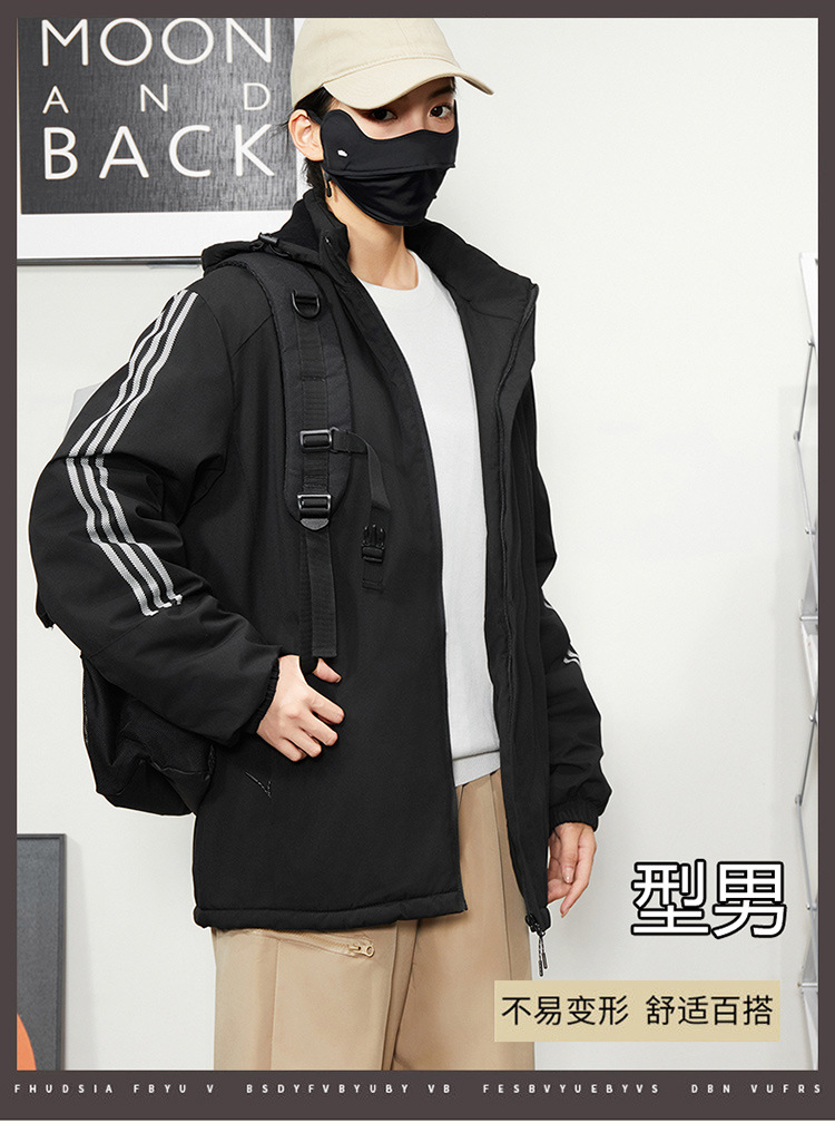 秋冬帽子付きファスナー現物保温黒色普通青年合体型カジュアルサイドスリットポケットジャケット