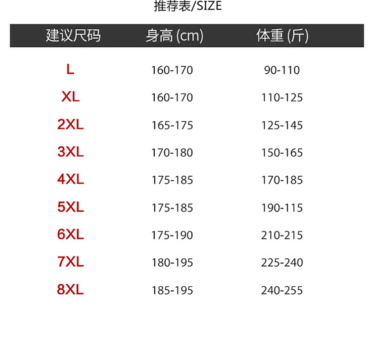 サイズ L,Xl,Xxxl,Xxxl,4xl,5xl,6xl,7XL,8XL