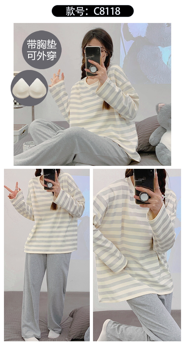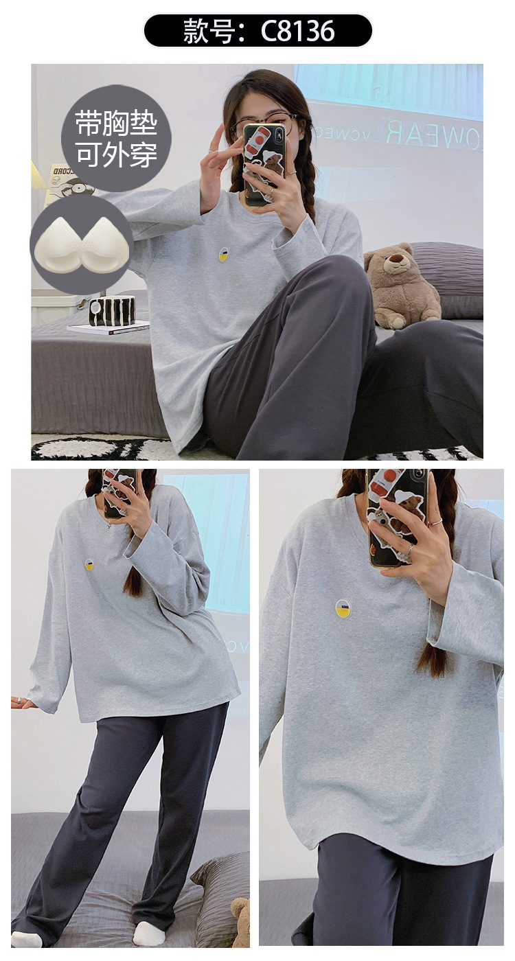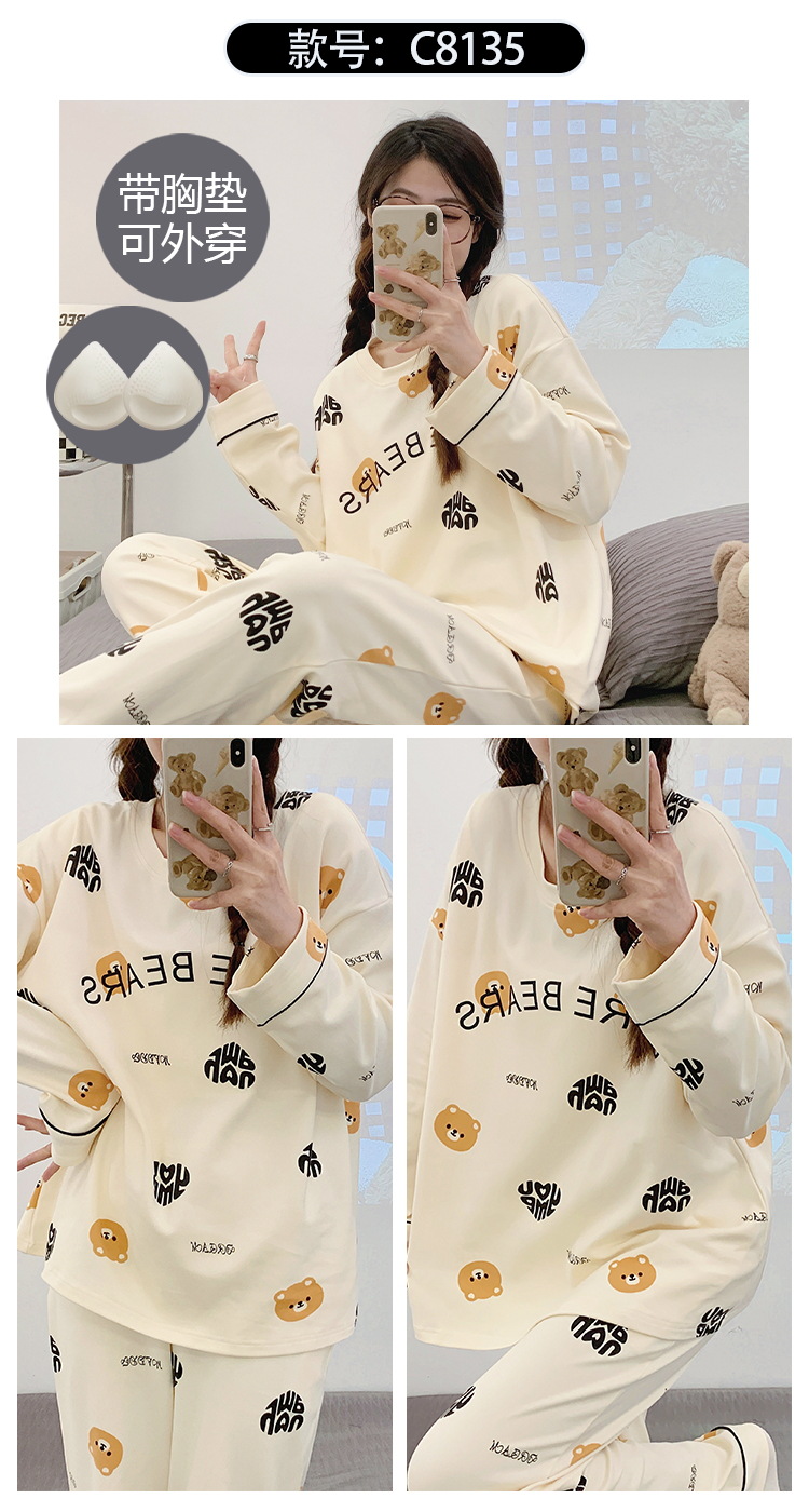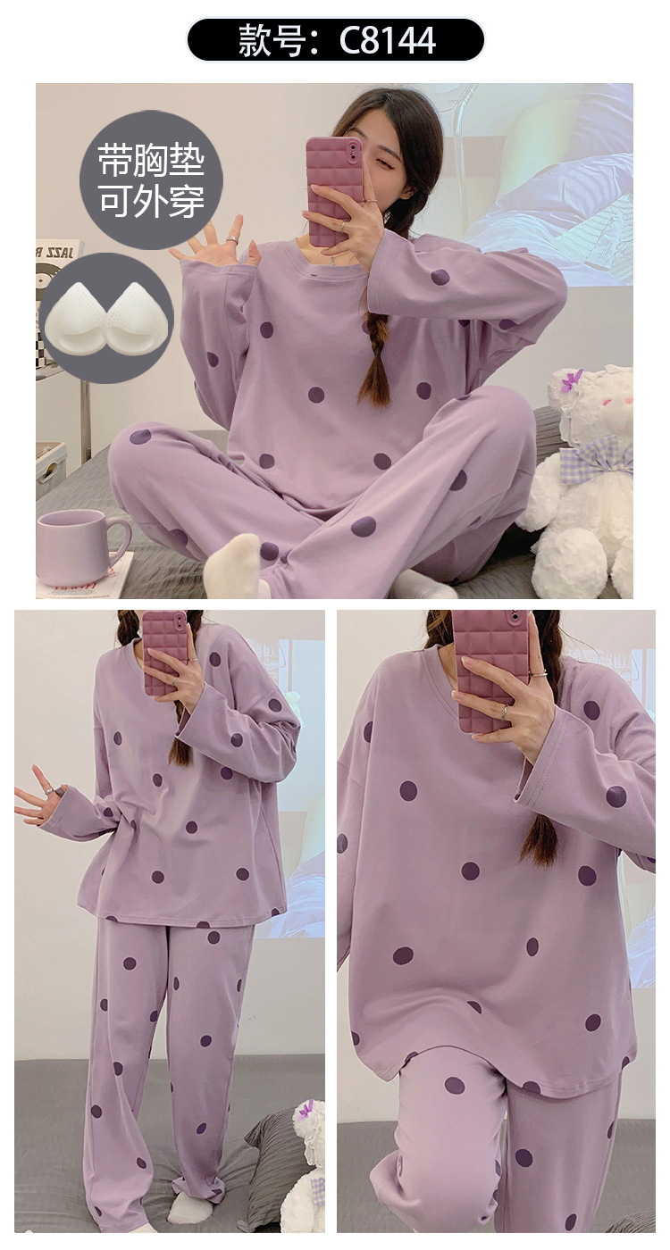 秋の新型長袖純綿パジャマ女性のカジュアルサイズは、綿の家庭服セットを着て生放送することができます。
