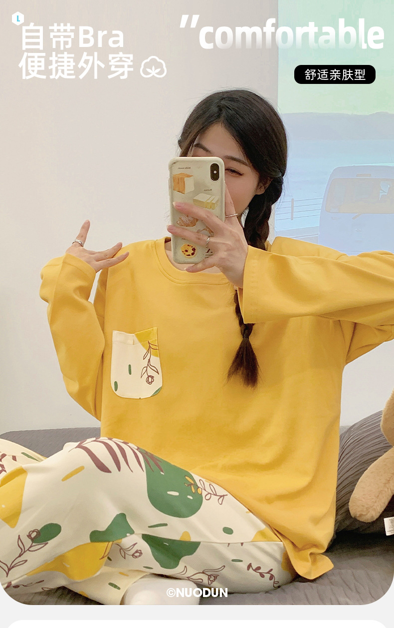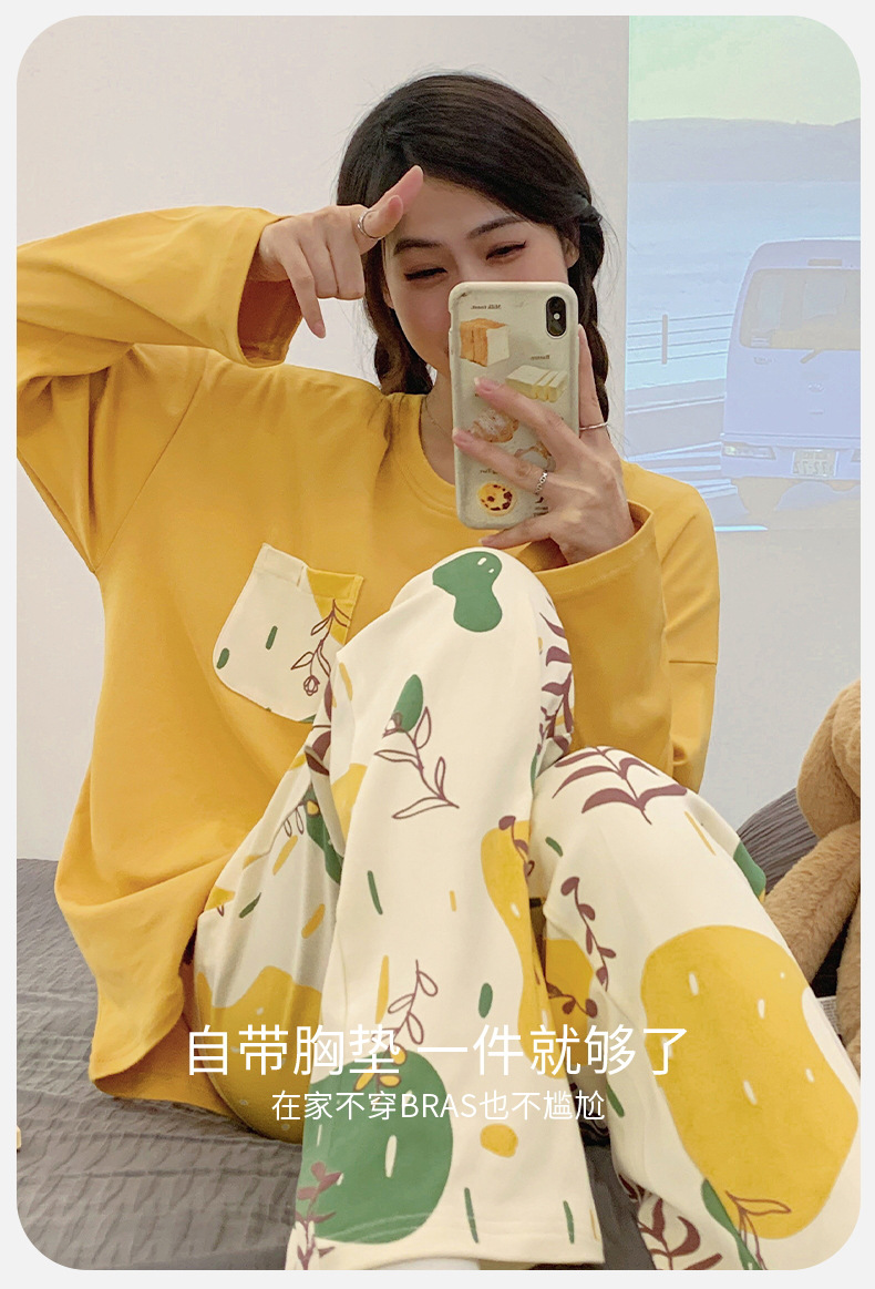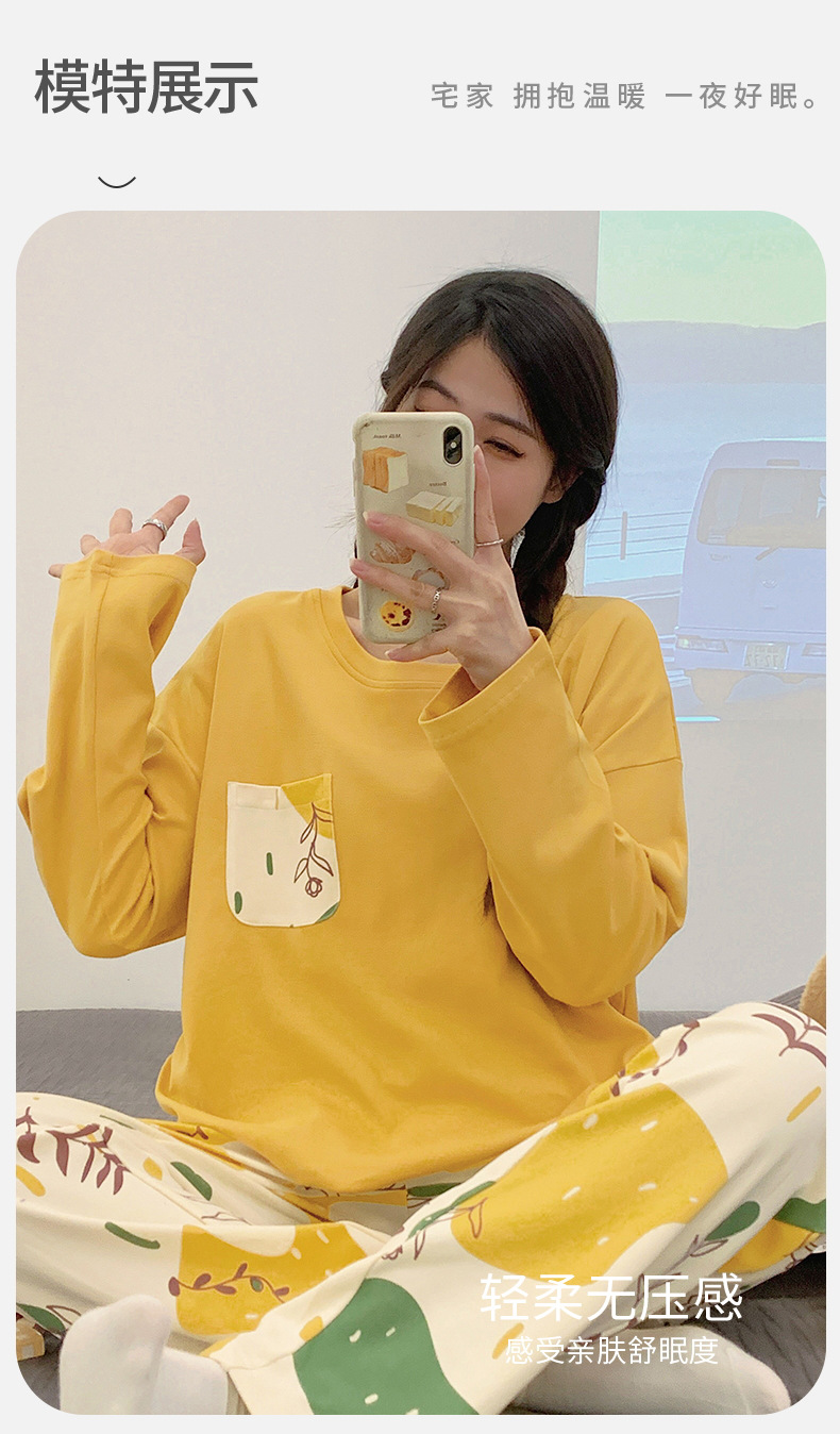 新しいパジャマ女性のための春と秋の純粋な綿長袖ズボン綿韓国漫画少女秋と冬のホームウェアセット