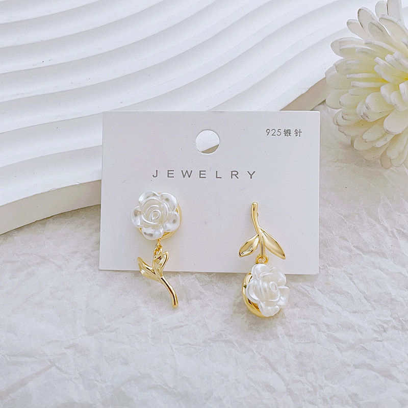新型フレンチファッション非対称花ピアス甘い個性創意イヤリング大衆デザイン感耳飾り卸売り