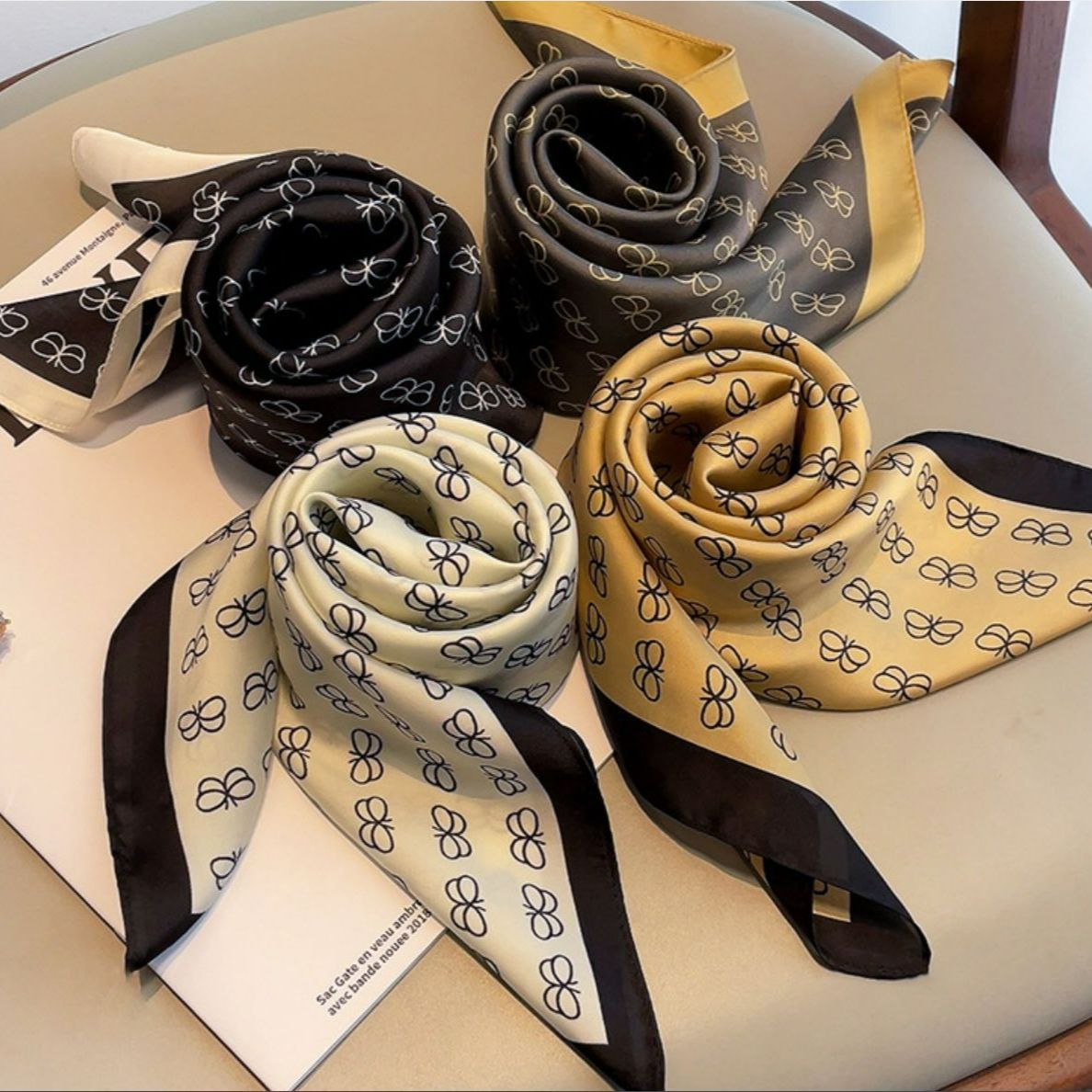 70春の起爆サテンのスカーフが流行しています。